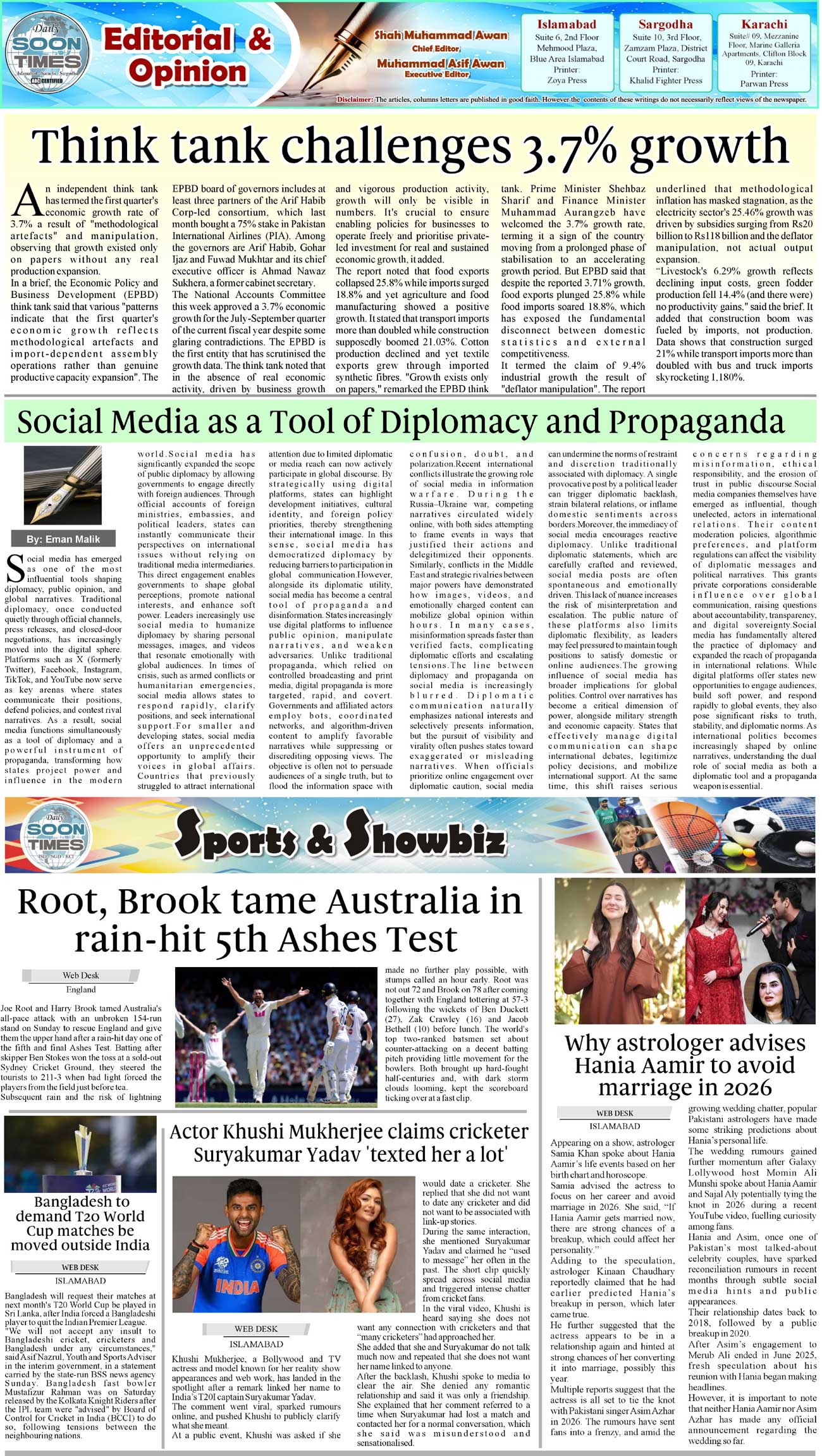 Daily Soon Times Page: 2 January 05, 2026 Daily Soon Times today's ePaper leading English national newspaper from Islamabad, Sargodha, Karachi, Pakistan << First << 2 >> Last >> Page 1Page 2Page 3Page 4 × Daily Soon Times 1234s 1234s 2