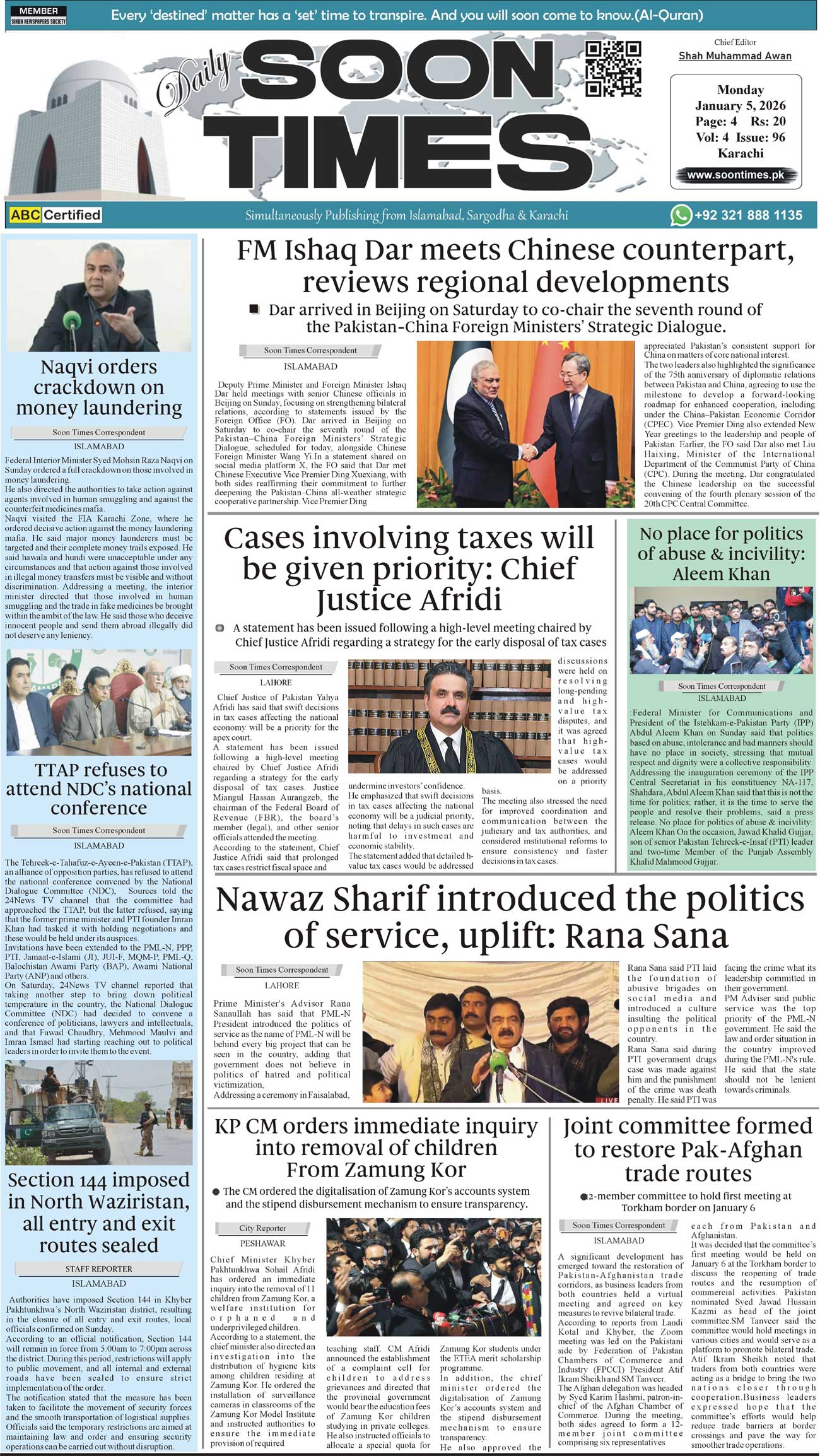 Daily Soon Times January 05, 2026 Daily Soon Times today's ePaper leading English national newspaper from Islamabad, Sargodha, Karachi, Pakistan << First << 1 >> Last >> Page 1Page 2Page 3Page 4 × Daily Soon Times 1k23k4 1k23k4 1k