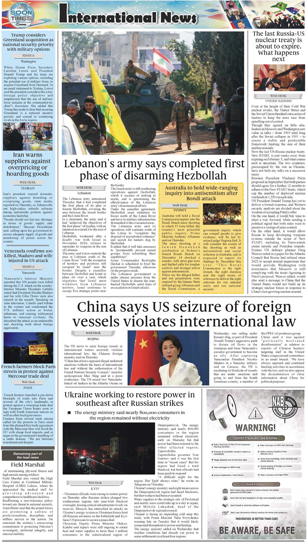 Daily Soon Times Page: 4 January 09, 2026 Daily Soon Times today's ePaper leading English national newspaper from Islamabad, Sargodha, Karachi, Pakistan << First << 4 >> Last >> Page 1Page 2Page 3Page 4 × Daily Soon Times 1k23k4 1k23k4 4