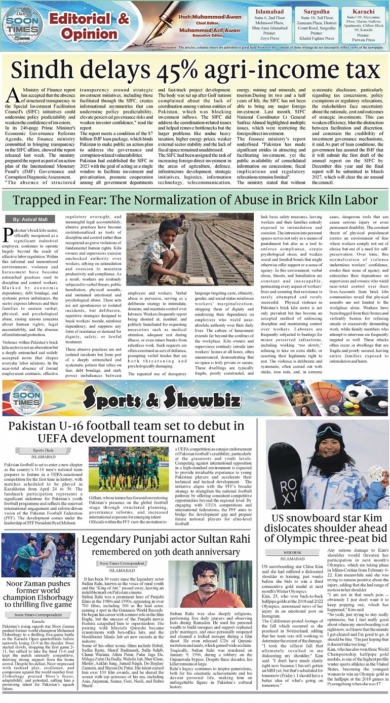 Daily Soon Times Page: 2 January 10, 2026 Daily Soon Times today's ePaper leading English national newspaper from Islamabad, Sargodha, Karachi, Pakistan << First << 2 >> Last >> Page 1Page 2Page 3Page 4 × Daily Soon Times 1234 1234 2