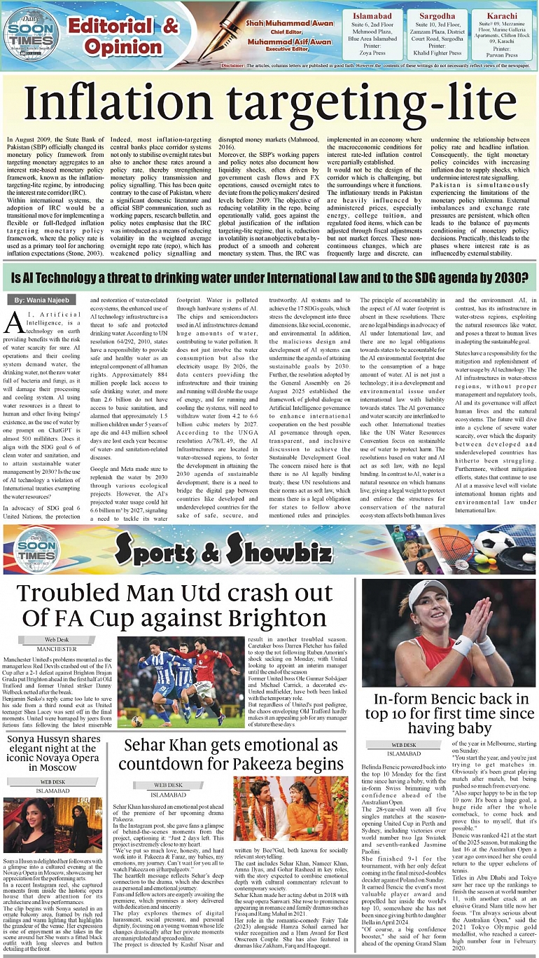 Daily Soon Times Page: 2 January 13, 2026 Daily Soon Times today's ePaper leading English national newspaper from Islamabad, Sargodha, Karachi, Pakistan << First << 2 >> Last >> Page 1Page 2Page 3Page 4 × Daily Soon Times 1.23k4 1.23k4 2