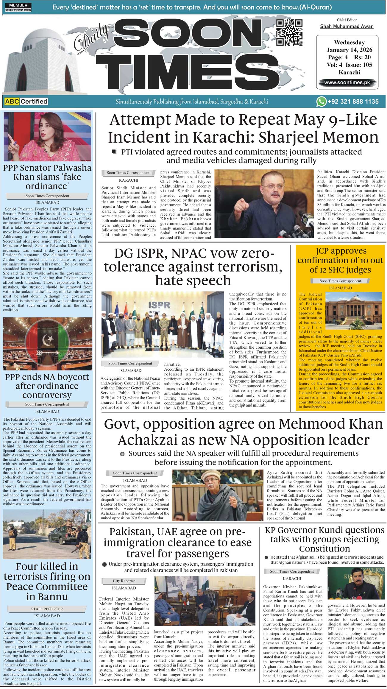 Daily Soon Times January 14, 2026 Daily Soon Times today's ePaper leading English national newspaper from Islamabad, Sargodha, Karachi, Pakistan << First << 1 >> Last >> Page 1Page 2Page 3Page 4 × Daily Soon Times 1k23k4 1k23k4 1k