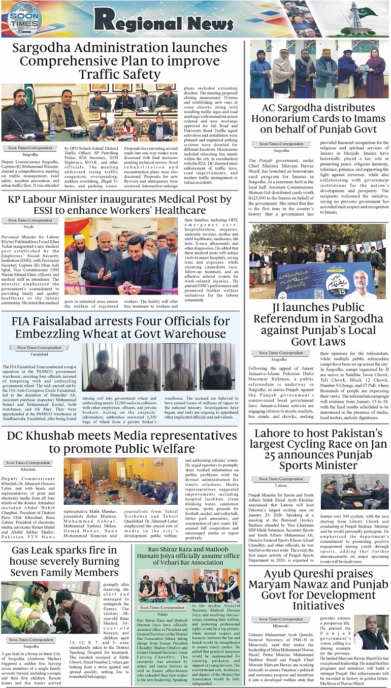 Daily Soon Times Page: 3 January 16, 2026 Daily Soon Times today's ePaper leading English national newspaper from Islamabad, Sargodha, Karachi, Pakistan << First << 3 >> Last >> Page 1Page 2Page 3Page 4 × Daily Soon Times 1234 1234 3
