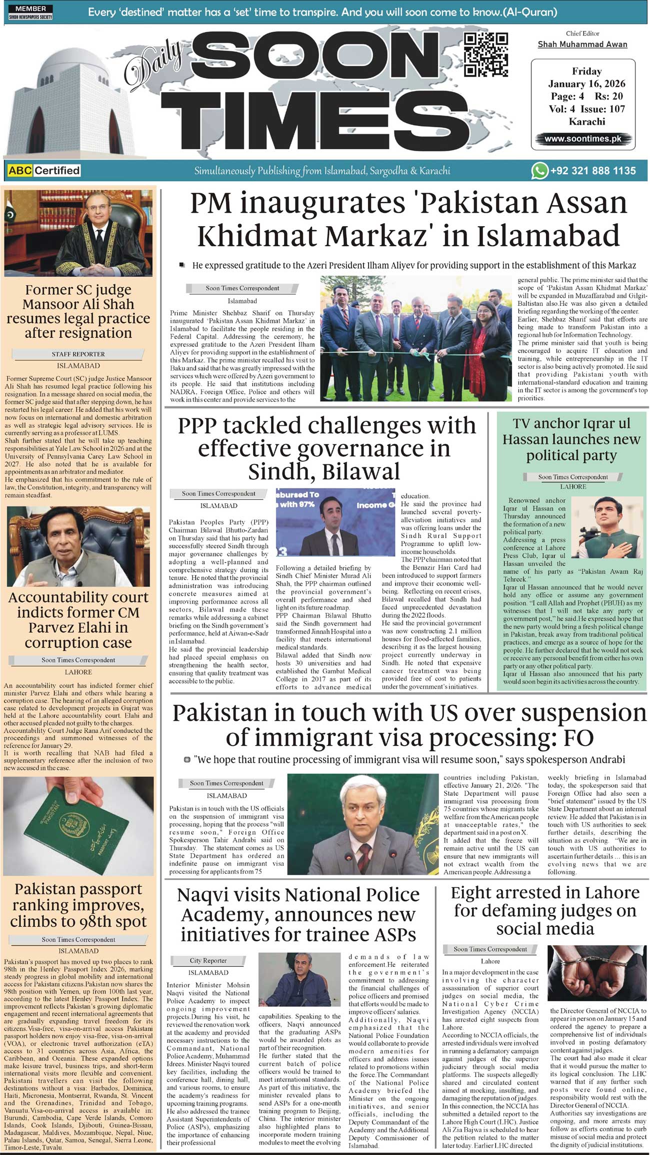 Daily Soon Times today's ePaper leading English national newspaper from Islamabad, Sargodha, Karachi, Pakistan