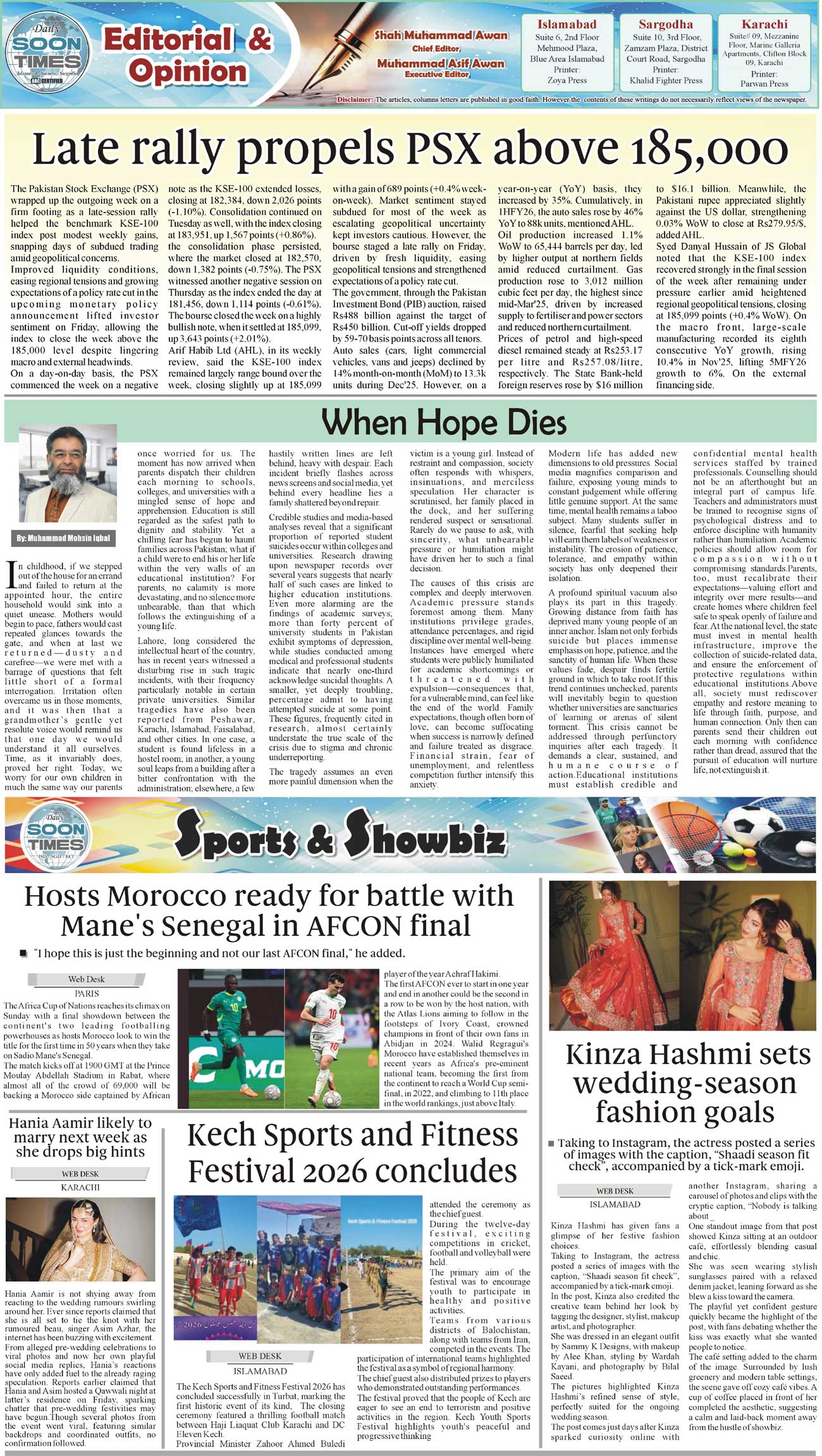Daily Soon Times Page: 2 January 19, 2026 Daily Soon Times today's ePaper leading English national newspaper from Islamabad, Sargodha, Karachi, Pakistan << First << 2 >> Last >> Page 1Page 2Page 3Page 4 × Daily Soon Times 1.234 1.234 2