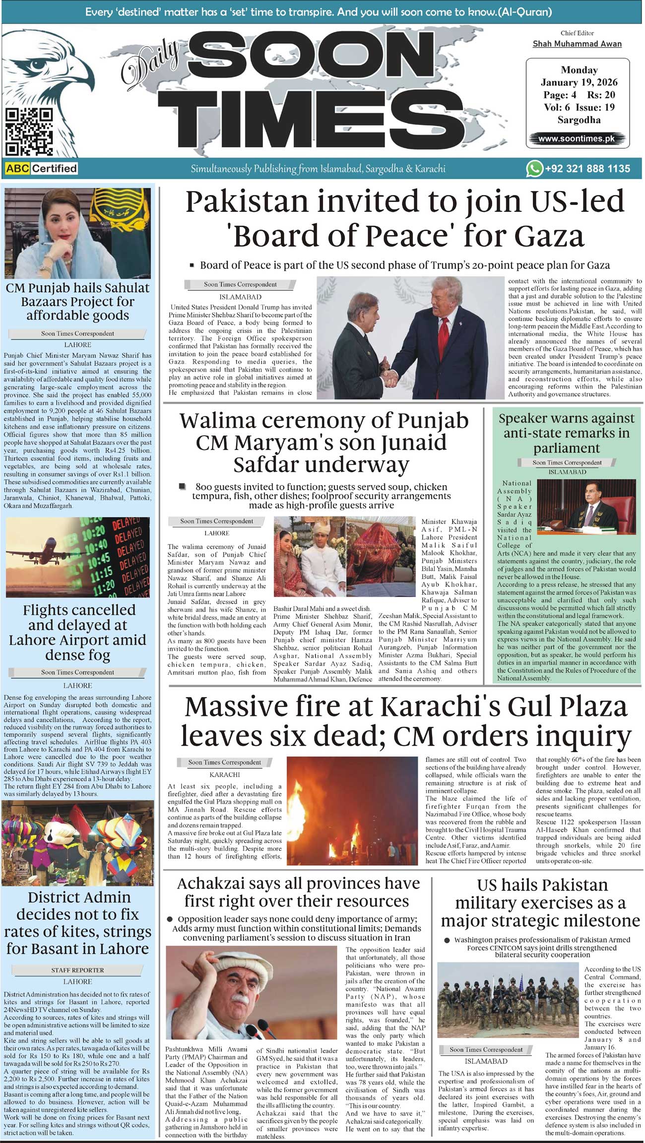 Daily Soon Times January 19, 2026 Daily Soon Times today's ePaper leading English national newspaper from Islamabad, Sargodha, Karachi, Pakistan << First << 1 >> Last >> Page 1Page 2Page 3Page 4 × Daily Soon Times 1234 1234 1