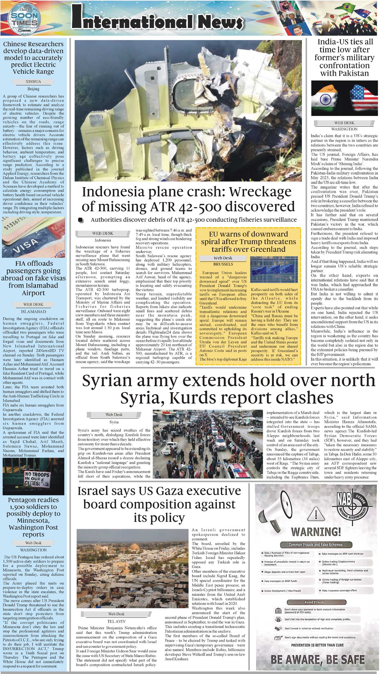 Daily Soon Times Page: 4 January 19, 2026 Daily Soon Times today's ePaper leading English national newspaper from Islamabad, Sargodha, Karachi, Pakistan << First << 4 >> Last >> Page 1Page 2Page 3Page 4 × Daily Soon Times 1234 1234 4