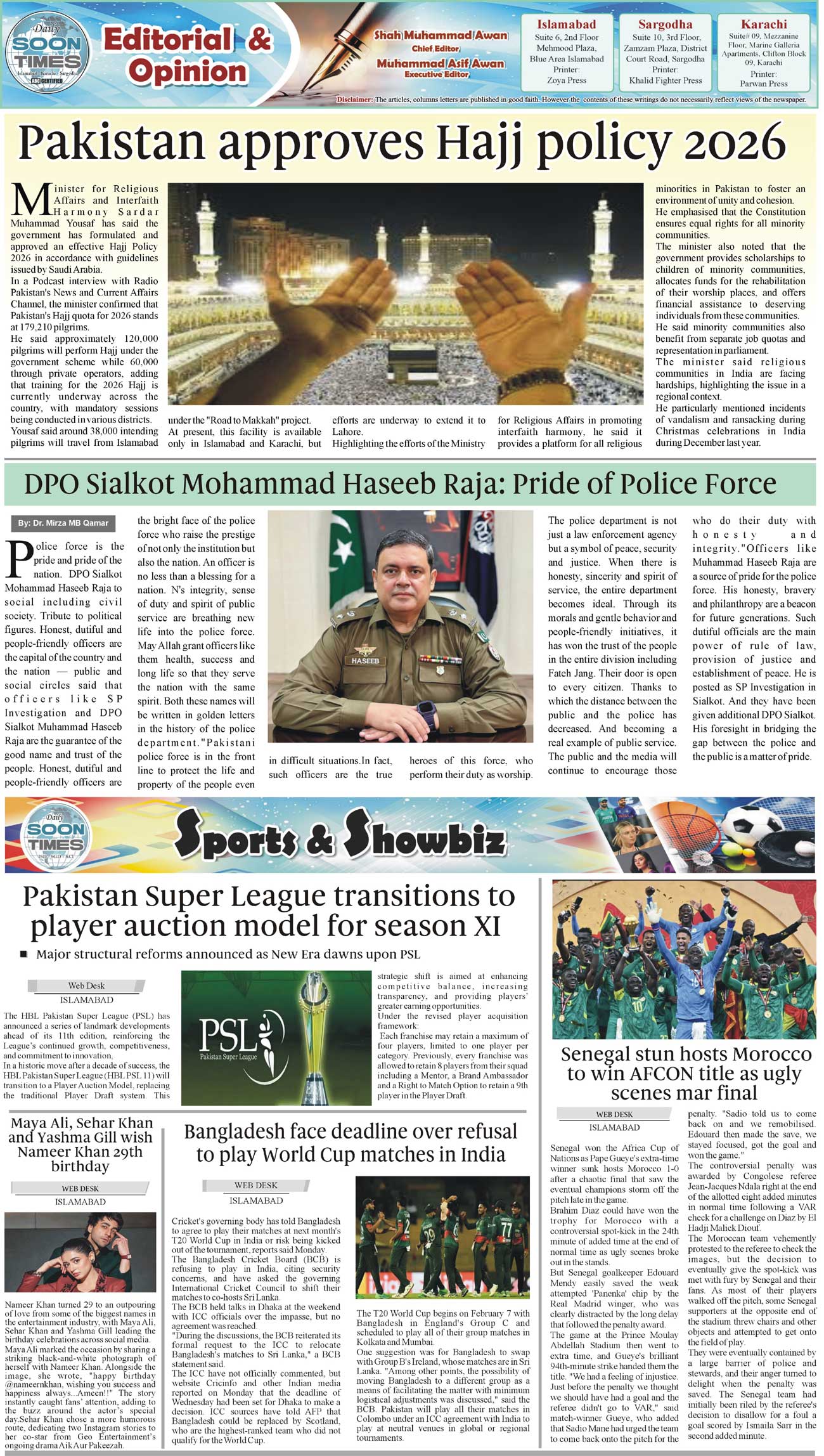 Daily Soon Times Page: 2 January 20, 2026 Daily Soon Times today's ePaper leading English national newspaper from Islamabad, Sargodha, Karachi, Pakistan << First << 2 >> Last >> Page 1Page 2Page 3Page 4 × Daily Soon Times 1234 1234 2
