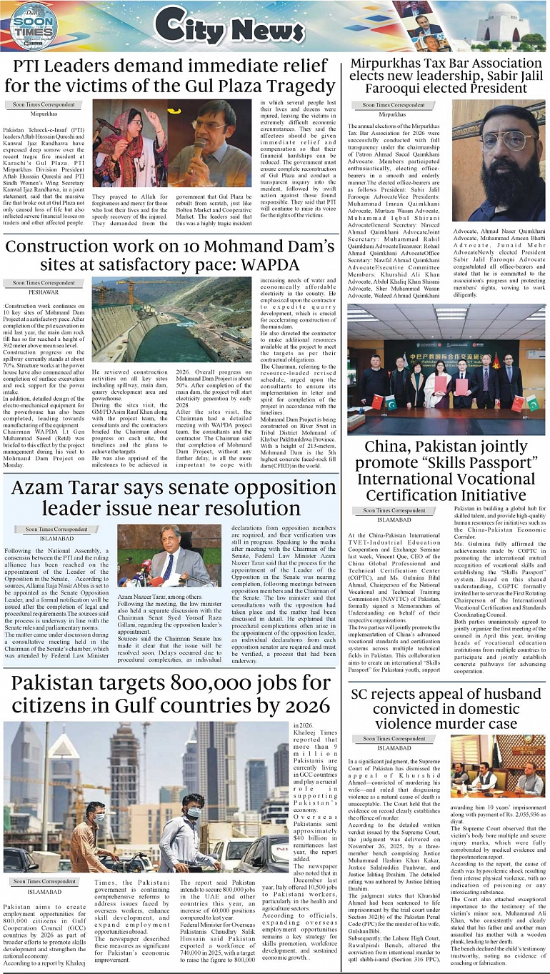 Daily Soon Times Page: 3 January 20, 2026 Daily Soon Times today's ePaper leading English national newspaper from Islamabad, Sargodha, Karachi, Pakistan << First << 3 >> Last >> Page 1Page 2Page 3Page 4 × Daily Soon Times 1k23k4 1k23k4 3k
