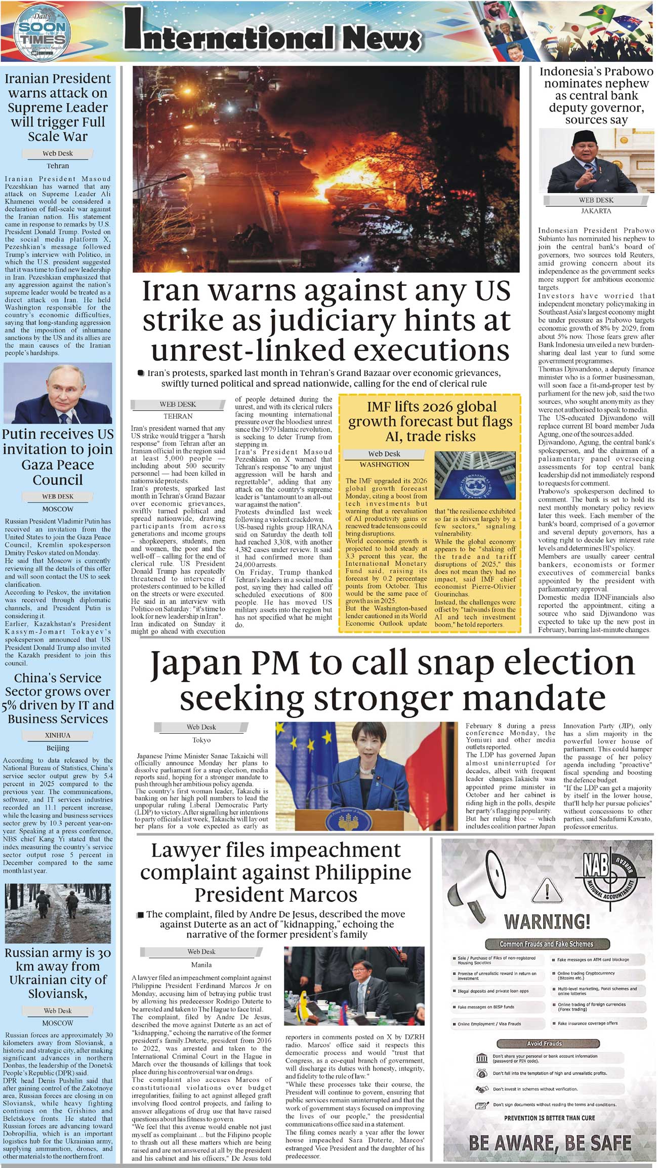 Daily Soon Times Page: 4 January 20, 2026 Daily Soon Times today's ePaper leading English national newspaper from Islamabad, Sargodha, Karachi, Pakistan << First << 4 >> Last >> Page 1Page 2Page 3Page 4 × Daily Soon Times 1k23k4 1k23k4 4
