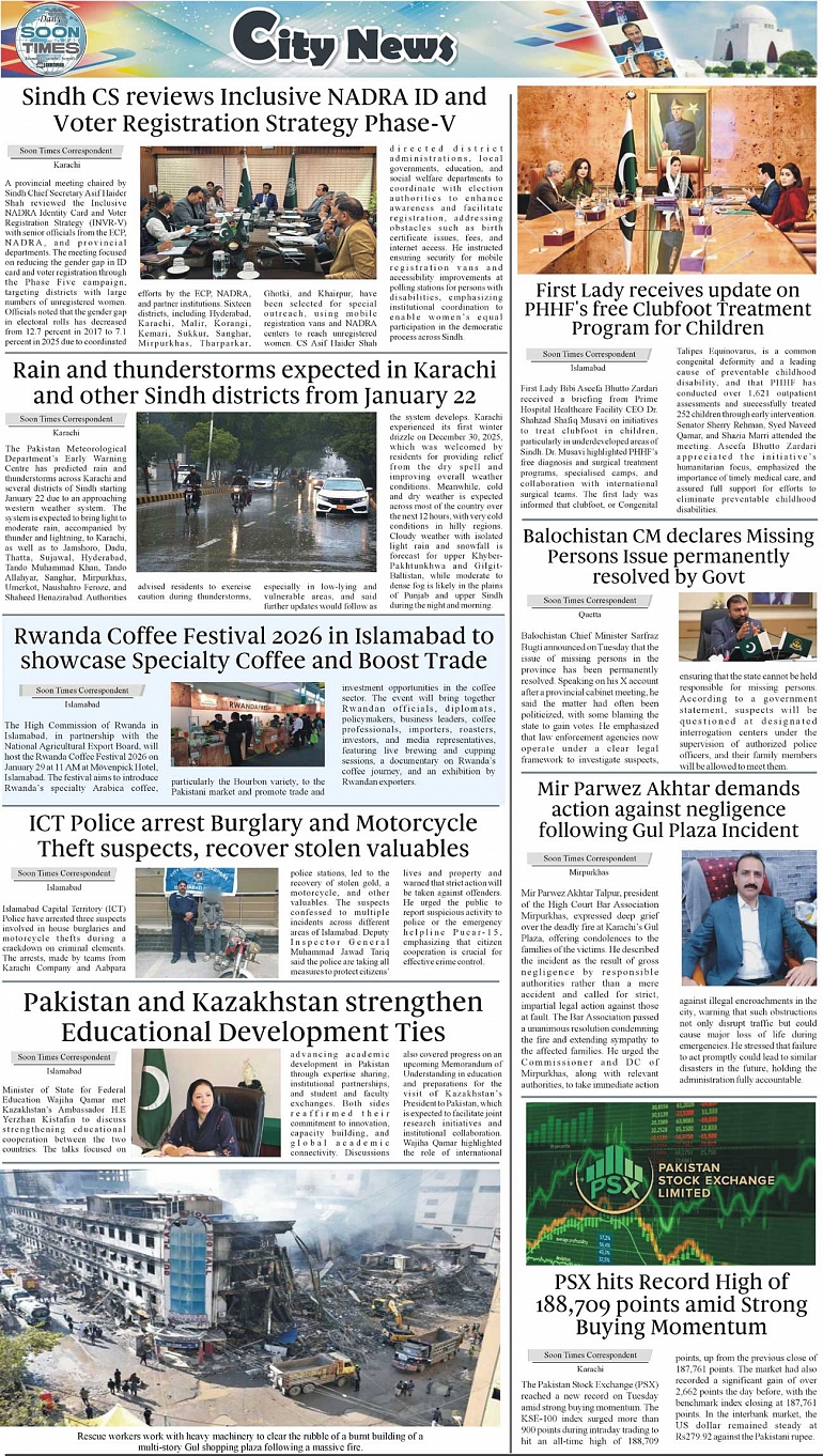 Daily Soon Times Page: 3 January 21, 2026 Daily Soon Times today's ePaper leading English national newspaper from Islamabad, Sargodha, Karachi, Pakistan << First << 3 >> Last >> Page 1Page 2Page 3Page 4 × Daily Soon Times 1k23k4 1k23k4 3k