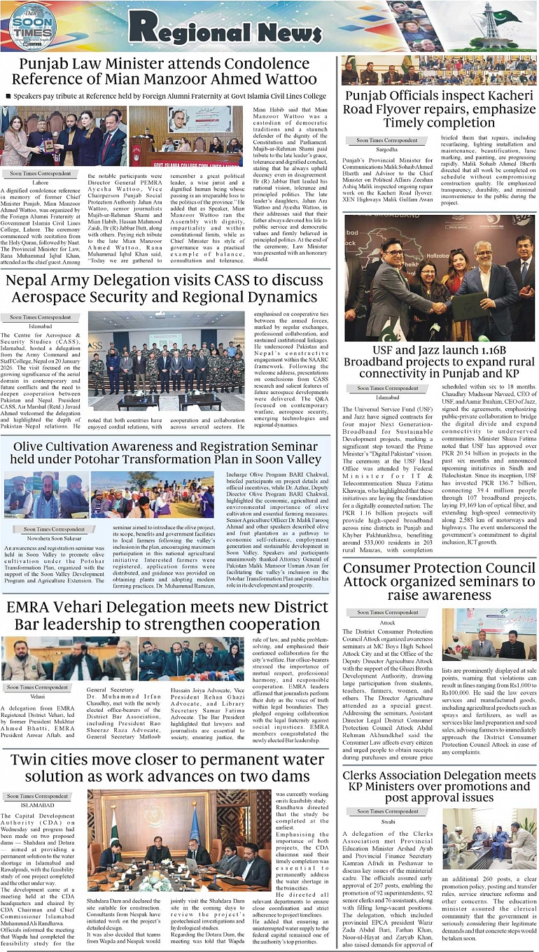 Daily Soon Times Page: 3 January 22, 2026 Daily Soon Times today's ePaper leading English national newspaper from Islamabad, Sargodha, Karachi, Pakistan << First << 3 >> Last >> Page 1Page 2Page 3Page 4 × Daily Soon Times 1234 1234 3