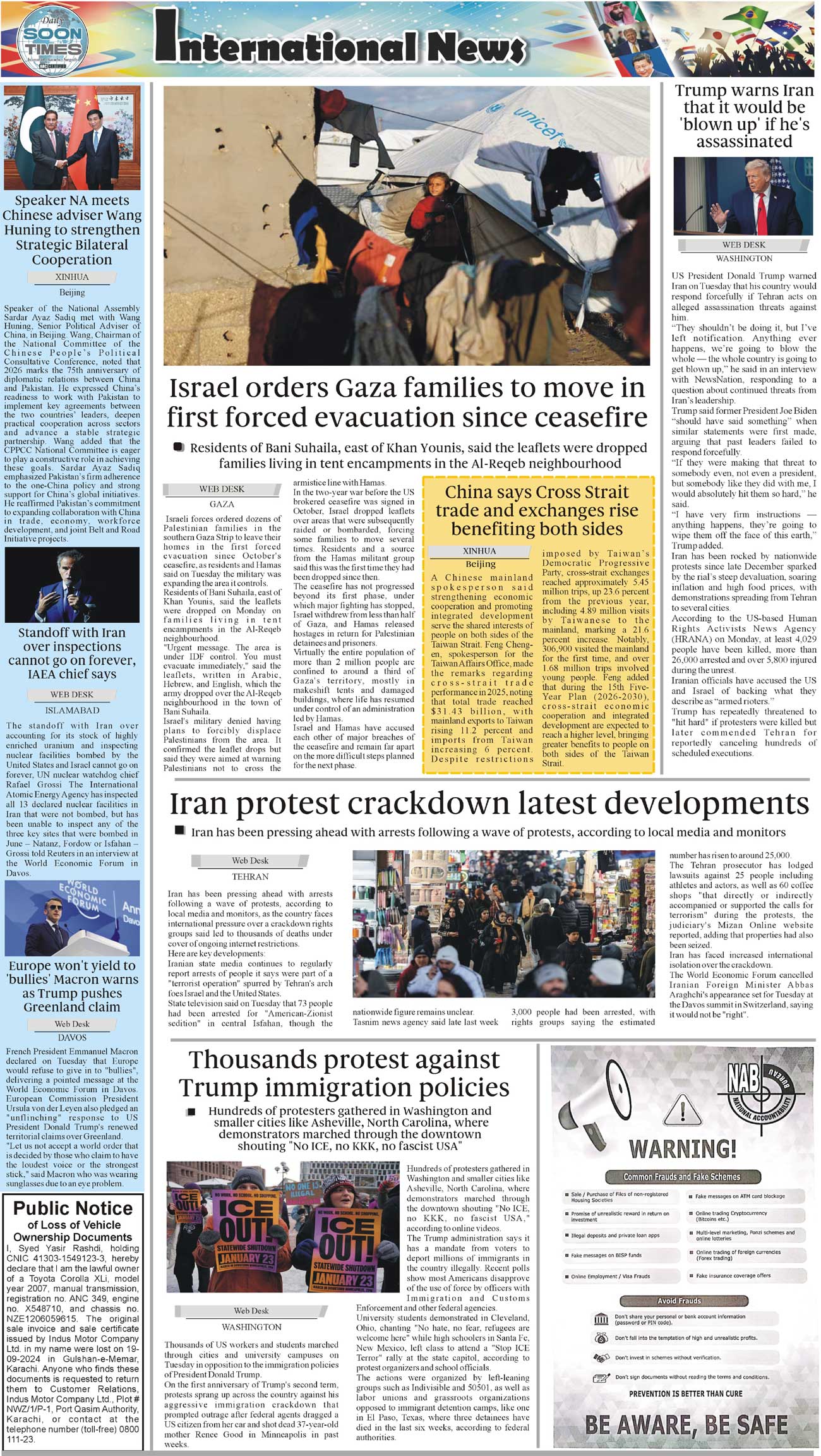 Daily Soon Times Page: 4 January 22, 2026 Daily Soon Times today's ePaper leading English national newspaper from Islamabad, Sargodha, Karachi, Pakistan << First << 4 >> Last >> Page 1Page 2Page 3Page 4 × Daily Soon Times 1234 1234 4