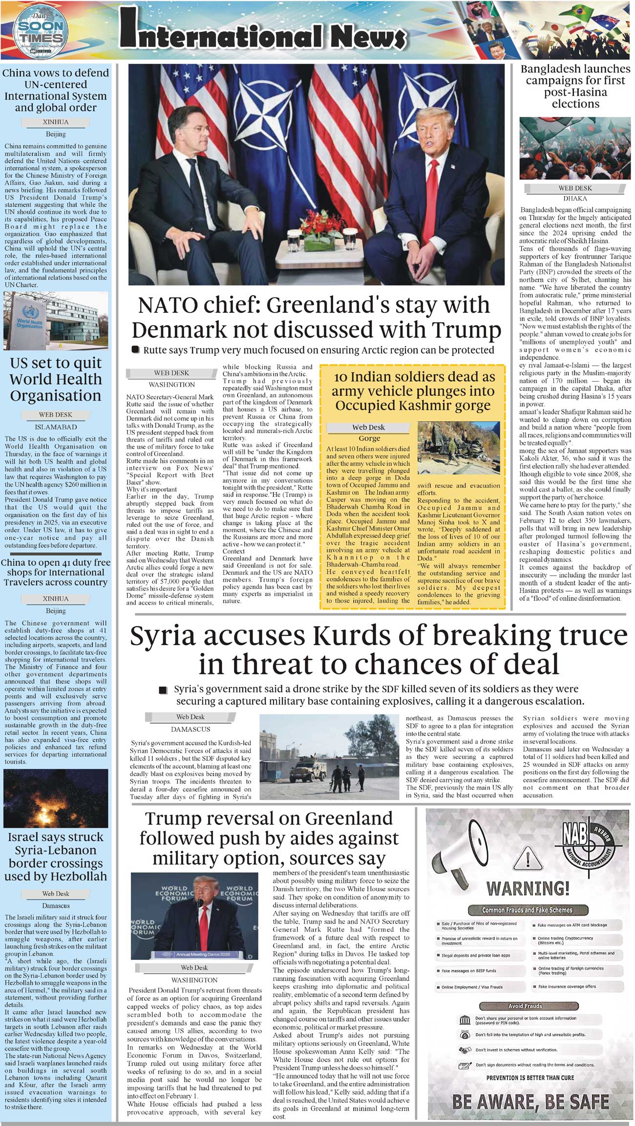 Daily Soon Times Page: 4 January 23, 2026 Daily Soon Times today's ePaper leading English national newspaper from Islamabad, Sargodha, Karachi, Pakistan << First << 4 >> Last >> Page 1Page 2Page 3Page 4 × Daily Soon Times 1.23k4 1.23k4 4