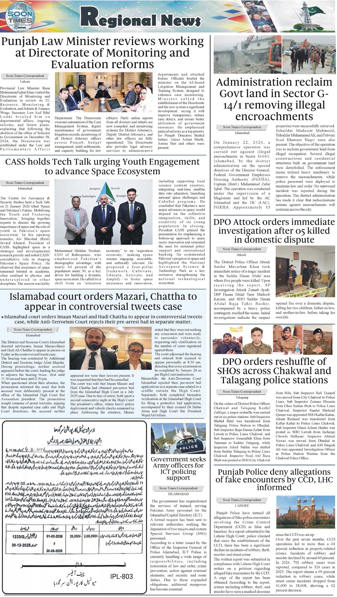 Daily Soon Times Page: 3 January 23, 2026 Daily Soon Times today's ePaper leading English national newspaper from Islamabad, Sargodha, Karachi, Pakistan << First << 3 >> Last >> Page 1Page 2Page 3Page 4 × Daily Soon Times 1234 1234 3