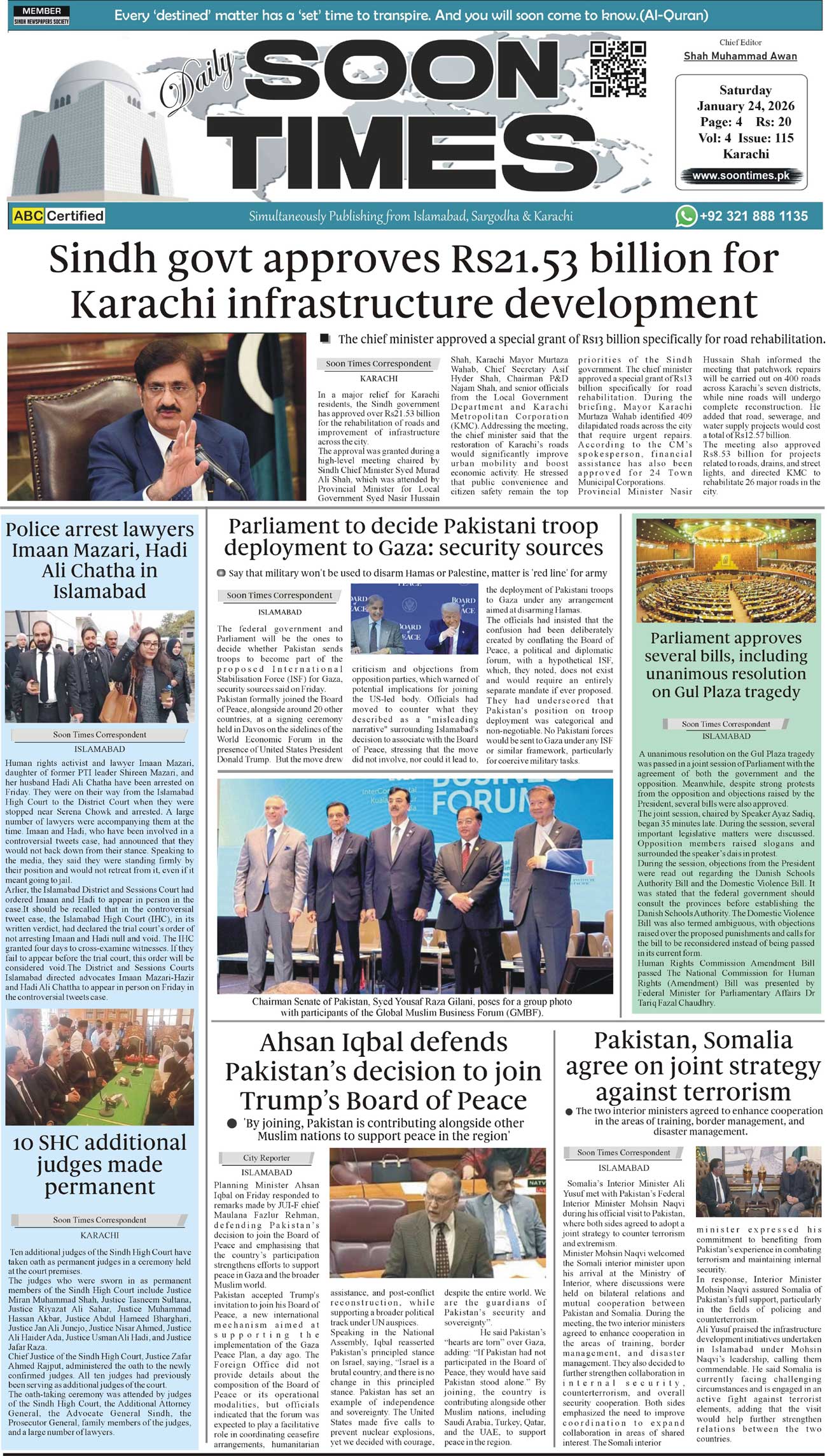 Daily Soon Times January 24, 2026 Daily Soon Times today's ePaper leading English national newspaper from Islamabad, Sargodha, Karachi, Pakistan << First << 1 >> Last >> Page 1Page 2Page 3Page 4 × Daily Soon Times 1k23k4 1k23k4 1k