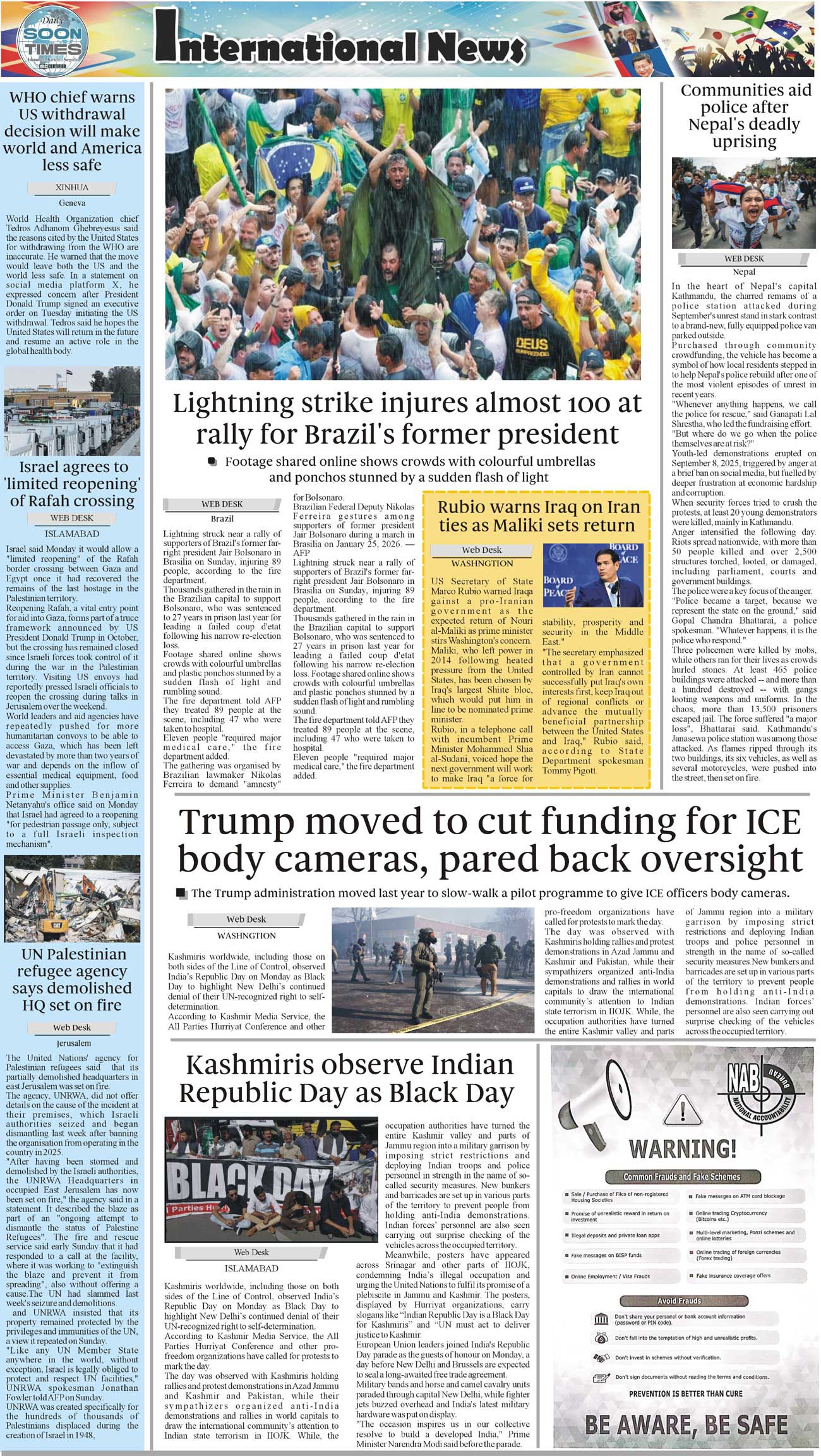 Daily Soon Times Page: 4 January 27, 2026 Daily Soon Times today's ePaper leading English national newspaper from Islamabad, Sargodha, Karachi, Pakistan << First << 4 >> Last >> Page 1Page 2Page 3Page 4 × Daily Soon Times 1k23k4 1k23k4 4
