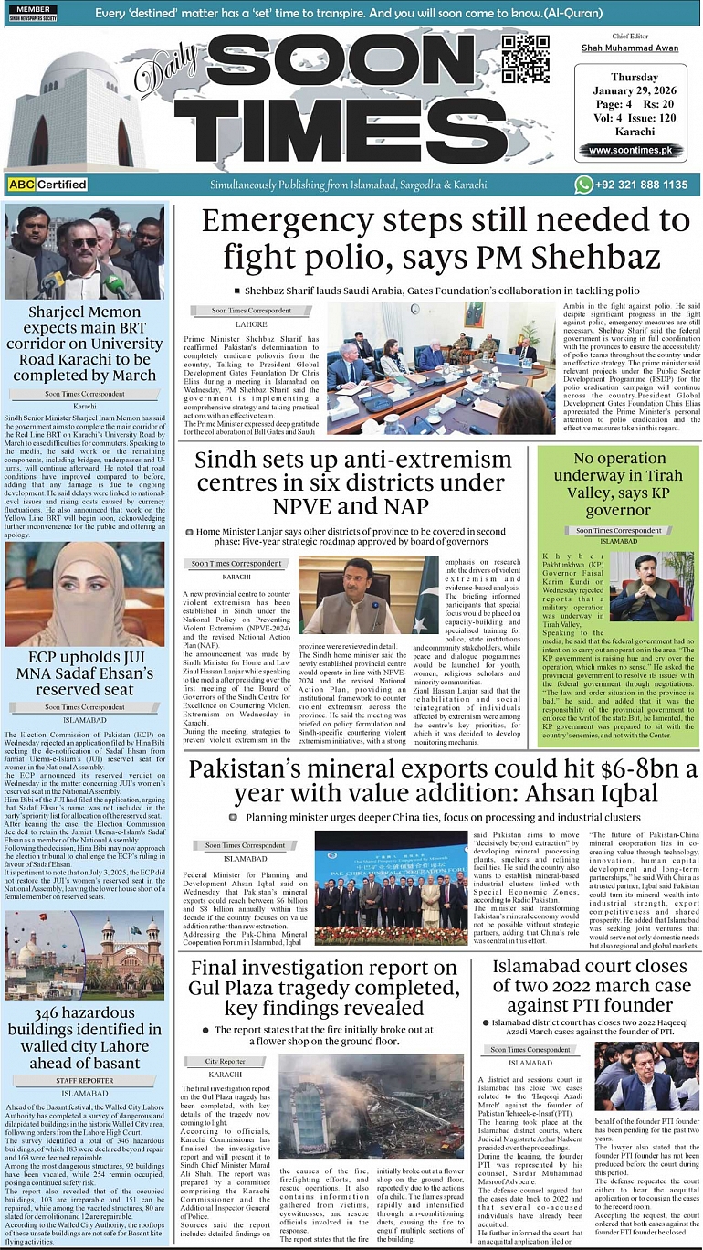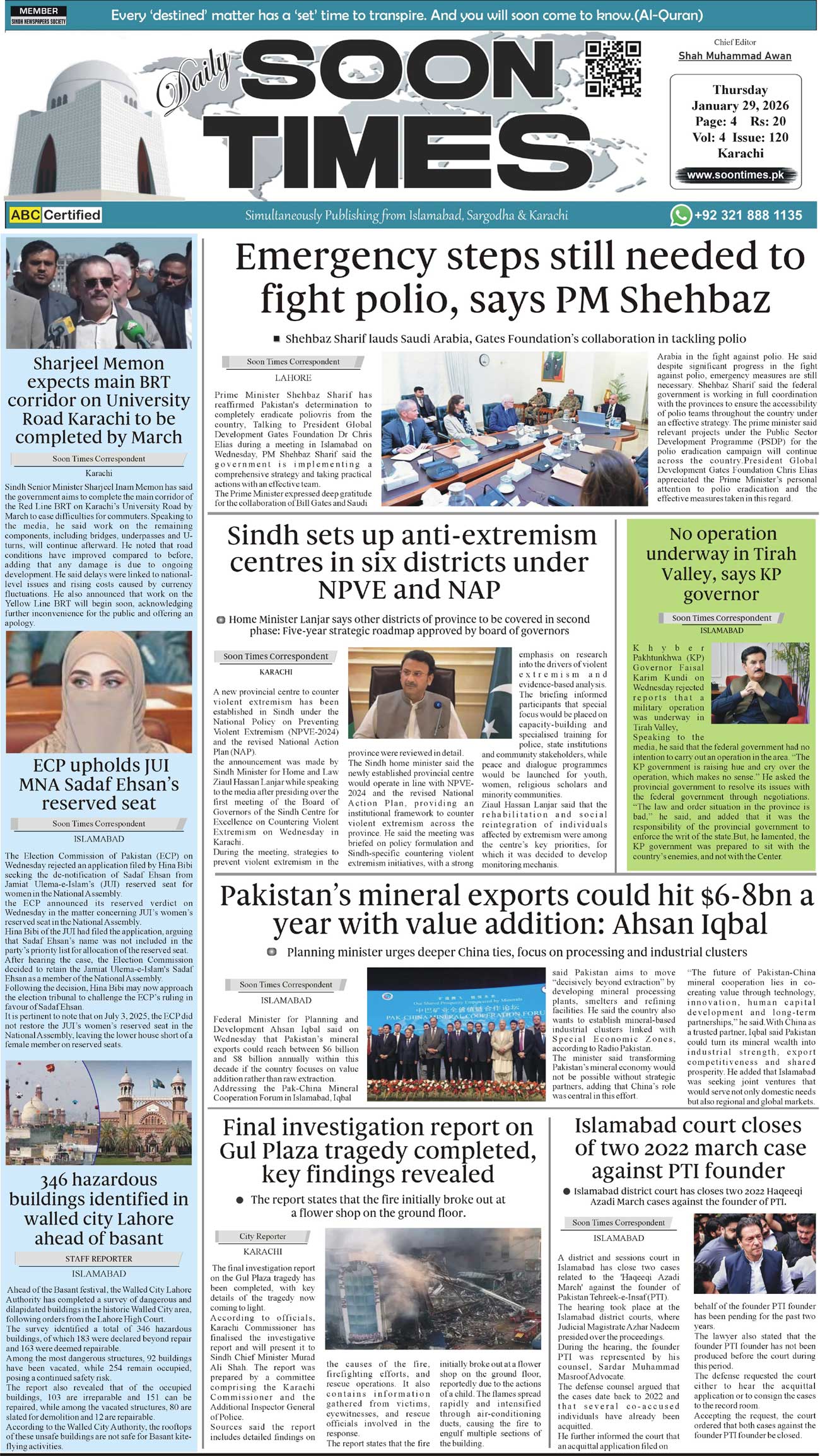 Daily Soon Times January 29, 2026 Daily Soon Times today's ePaper leading English national newspaper from Islamabad, Sargodha, Karachi, Pakistan << First << 1 >> Last >> Page 1Page 2Page 3Page 4 × Daily Soon Times 1k23k4 1k23k4 1k