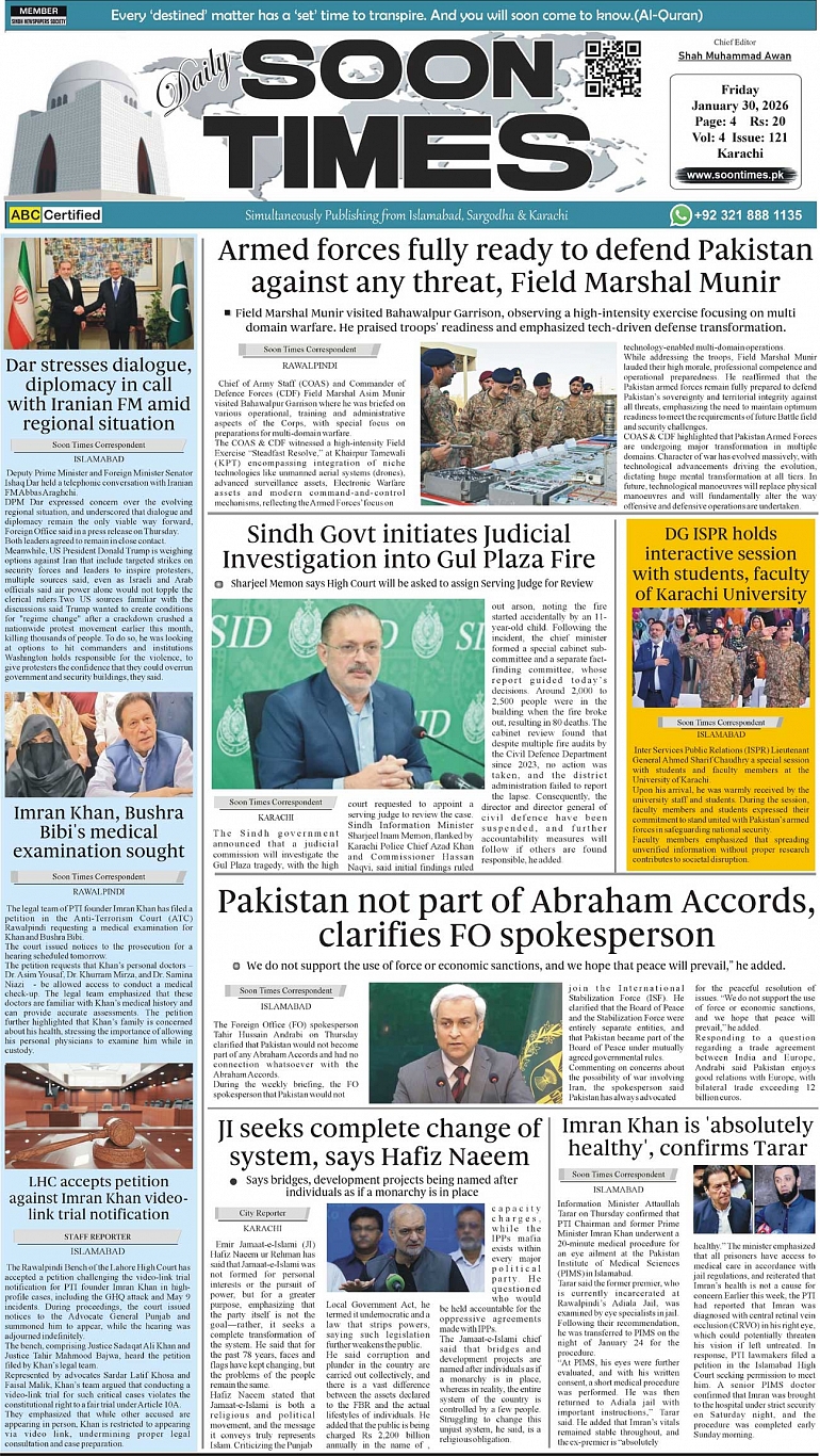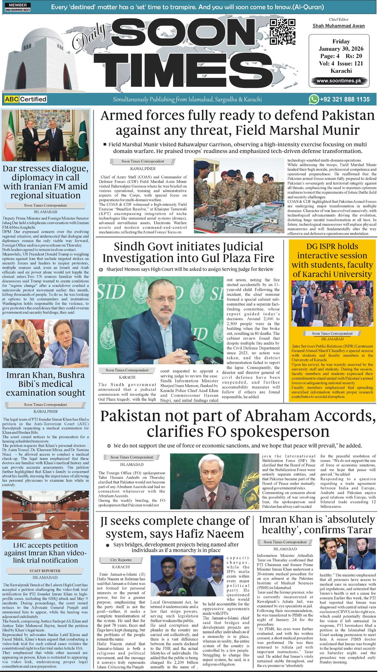 Daily Soon Times January 30, 2026 Daily Soon Times today's ePaper leading English national newspaper from Islamabad, Sargodha, Karachi, Pakistan << First << 1 >> Last >> Page 1Page 2Page 3Page 4 × Daily Soon Times 1k23k4k 1k23k4k 1k