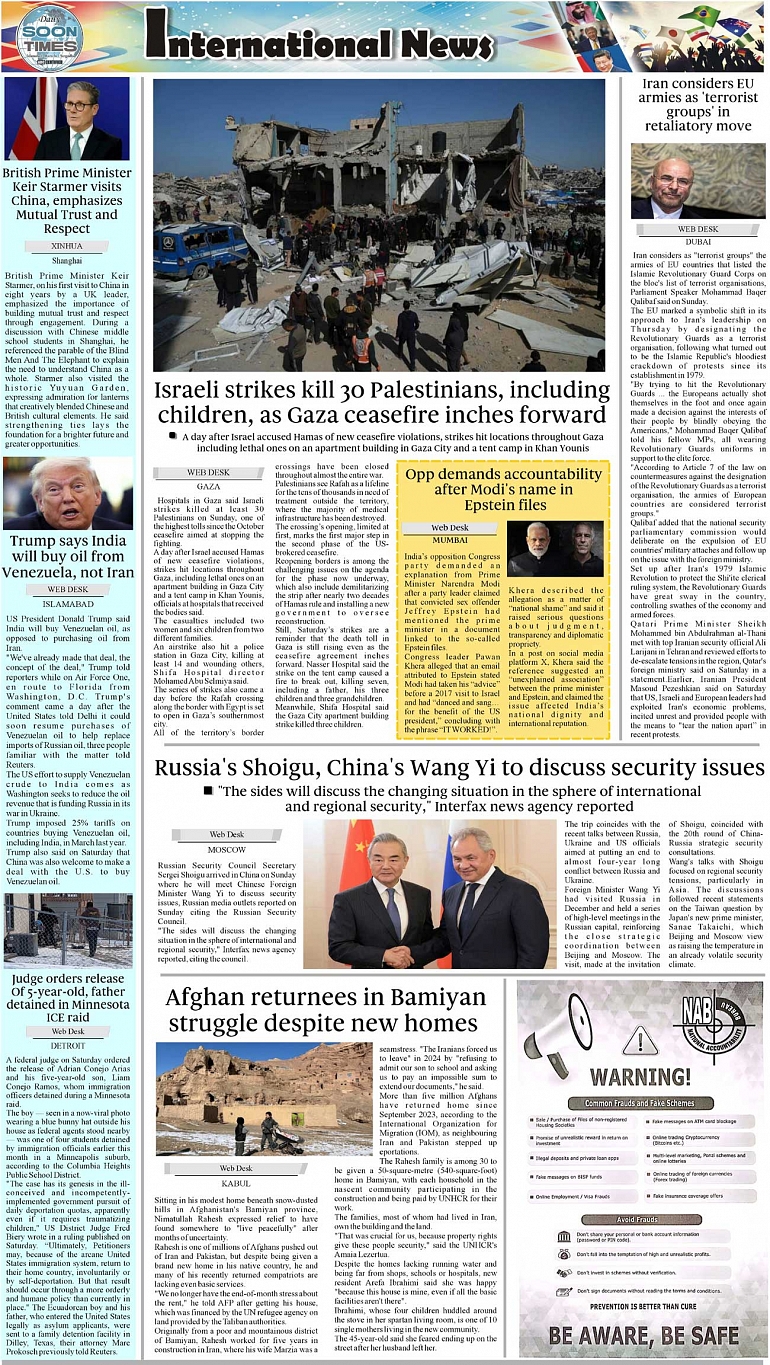 Daily Soon Times Page: 4 February 02, 2026 Daily Soon Times today's ePaper leading English national newspaper from Islamabad, Sargodha, Karachi, Pakistan << First << 4 >> Last >> Page 1Page 2Page 3Page 4 × Daily Soon Times 1.23k4 1.23k4 4