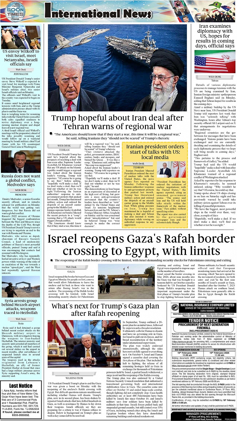 Daily Soon Times Page: 4 February 03, 2026 Daily Soon Times today's ePaper leading English national newspaper from Islamabad, Sargodha, Karachi, Pakistan << First << 4 >> Last >> Page 1Page 2Page 3Page 4 × Daily Soon Times 1234 1234 4