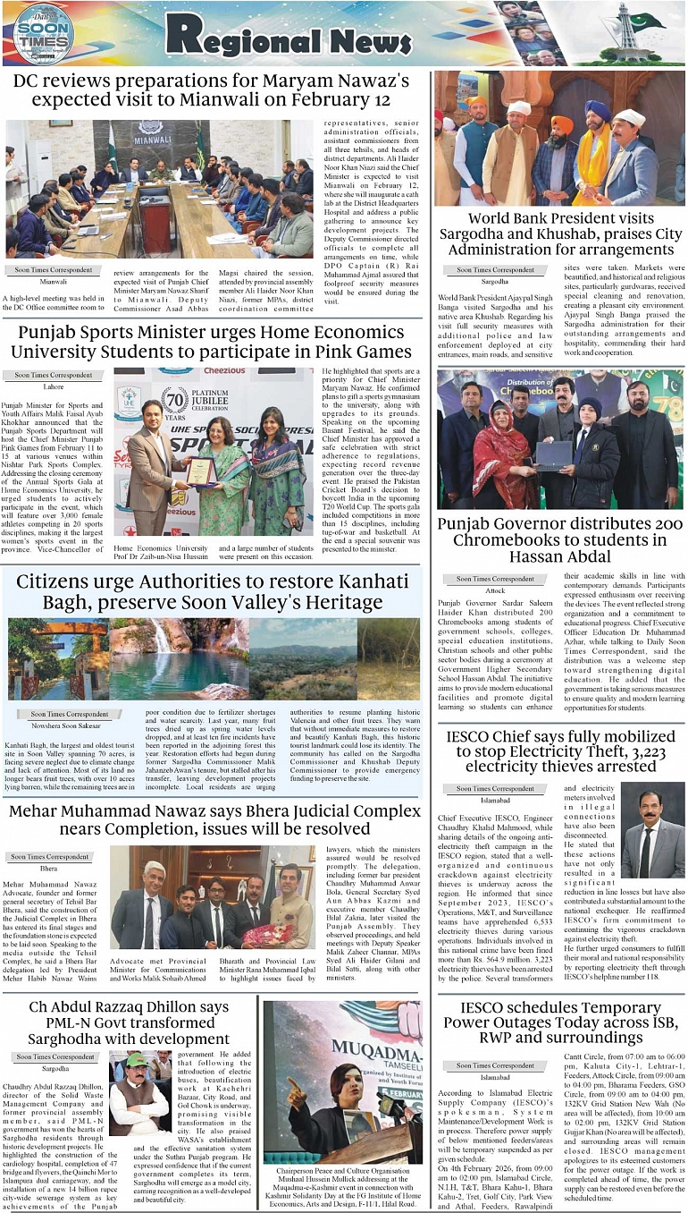Daily Soon Times Page: 3 February 04, 2026 Daily Soon Times today's ePaper leading English national newspaper from Islamabad, Sargodha, Karachi, Pakistan << First << 3 >> Last >> Page 1Page 2Page 3Page 4 × Daily Soon Times 1.23.4. 1.23.4. 3.