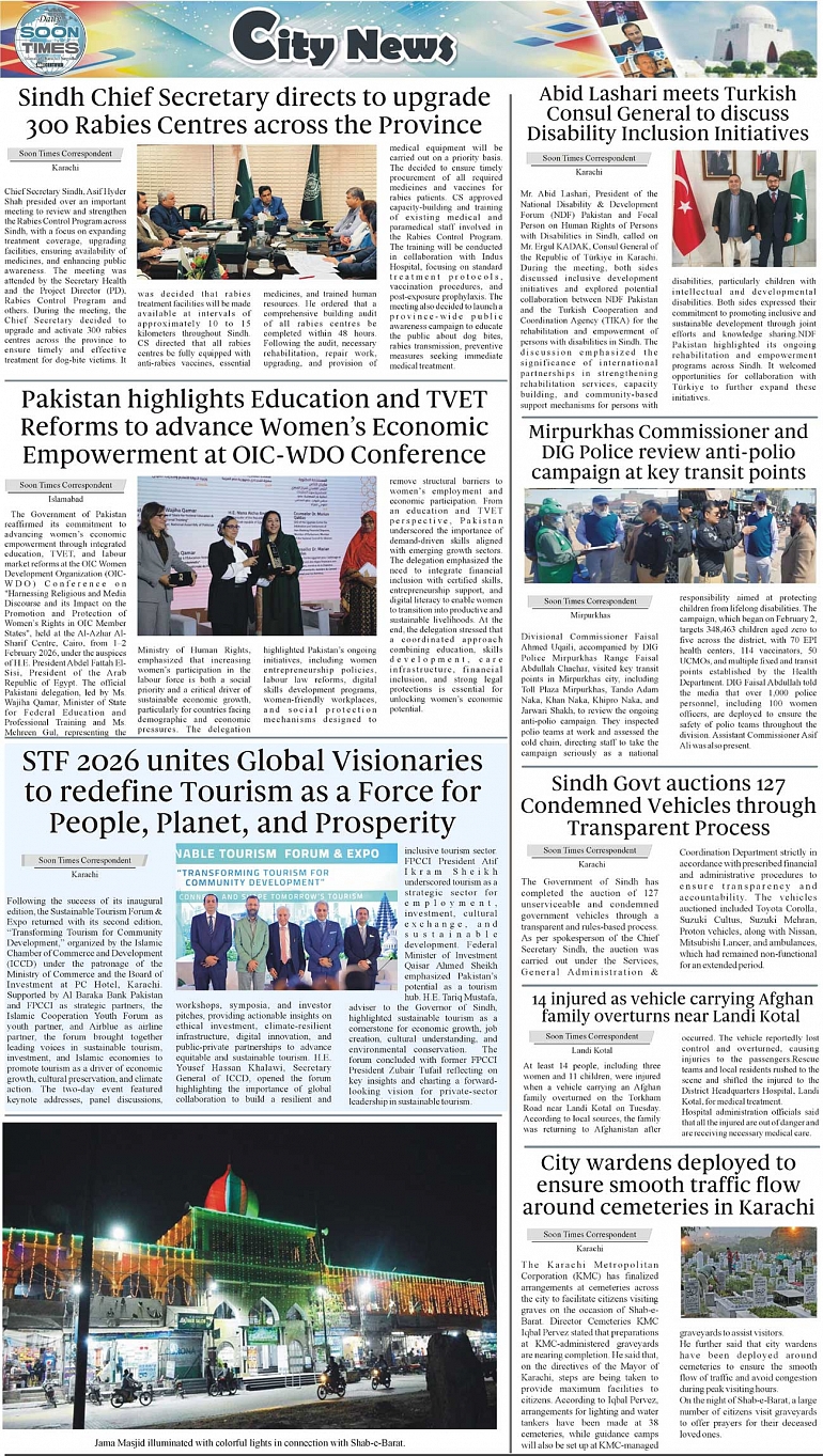 Daily Soon Times Page: 3 February 04, 2026 Daily Soon Times today's ePaper leading English national newspaper from Islamabad, Sargodha, Karachi, Pakistan << First << 3 >> Last >> Page 1Page 2Page 3Page 4 × Daily Soon Times 1k23k4. 1k23k4. 3k