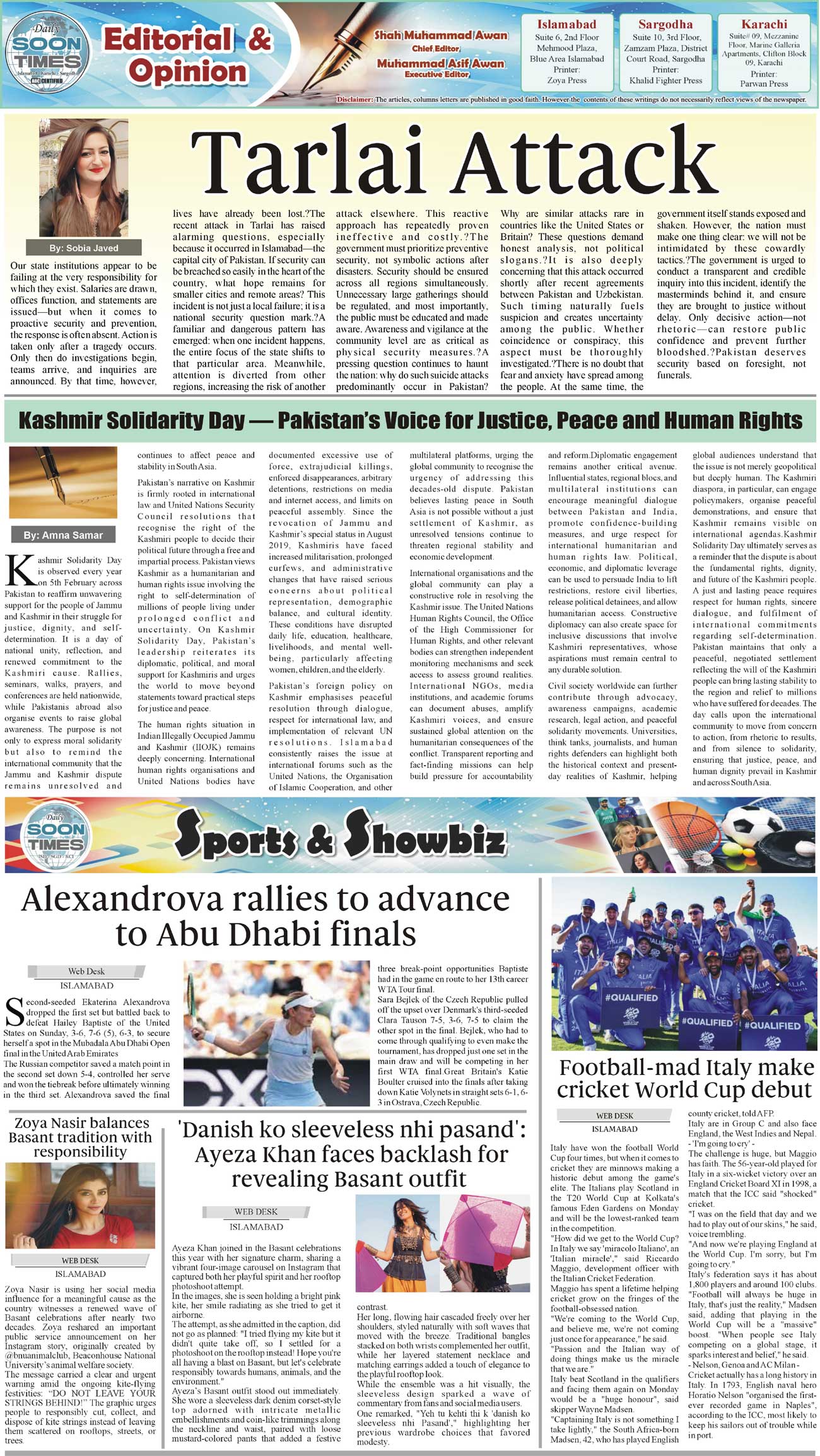 Daily Soon Times Page: 2 February 09, 2026 Daily Soon Times today's ePaper leading English national newspaper from Islamabad, Sargodha, Karachi, Pakistan << First << 2 >> Last >> Page 1Page 2Page 3Page 4 × Daily Soon Times 1234 1234 2