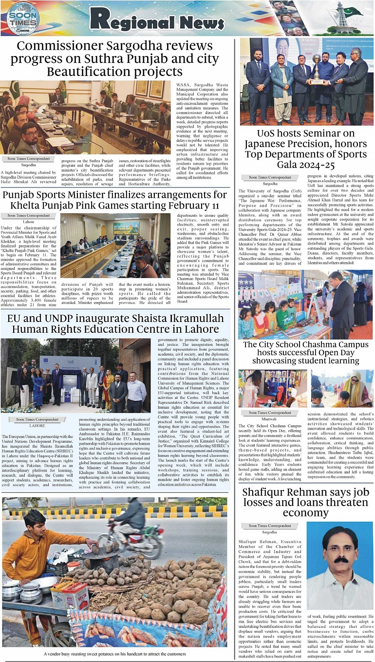 Daily Soon Times Page: 3 February 10, 2026 Daily Soon Times today's ePaper leading English national newspaper from Islamabad, Sargodha, Karachi, Pakistan << First << 3 >> Last >> Page 1Page 2Page 3Page 4 × Daily Soon Times 1.234 1.234 3