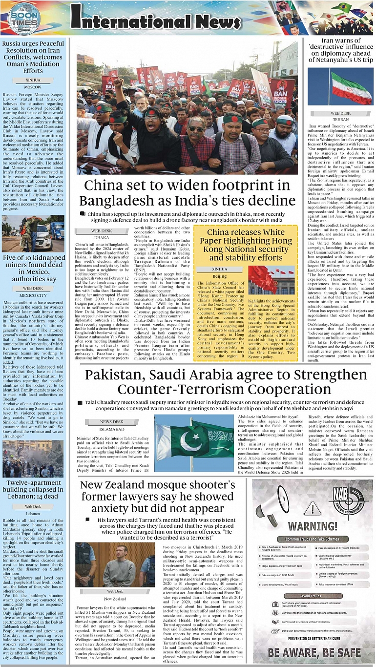 Daily Soon Times Page: 4 February 11, 2026 Daily Soon Times today's ePaper leading English national newspaper from Islamabad, Sargodha, Karachi, Pakistan << First << 4 >> Last >> Page 1Page 2Page 3Page 4 × Daily Soon Times 1.234 1.234 4