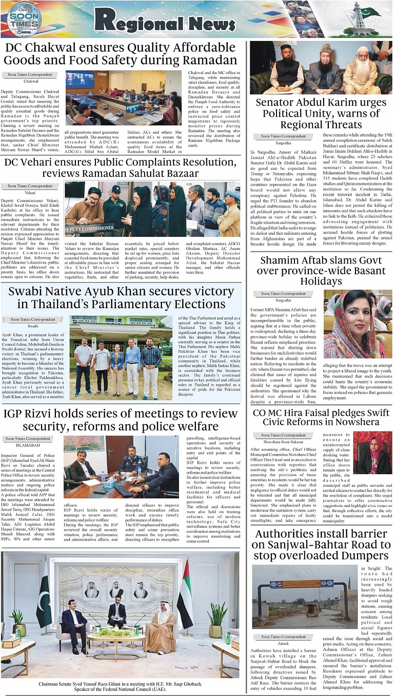 Daily Soon Times Page: 3 February 11, 2026 Daily Soon Times today's ePaper leading English national newspaper from Islamabad, Sargodha, Karachi, Pakistan << First << 3 >> Last >> Page 1Page 2Page 3Page 4 × Daily Soon Times 1234 1234 3