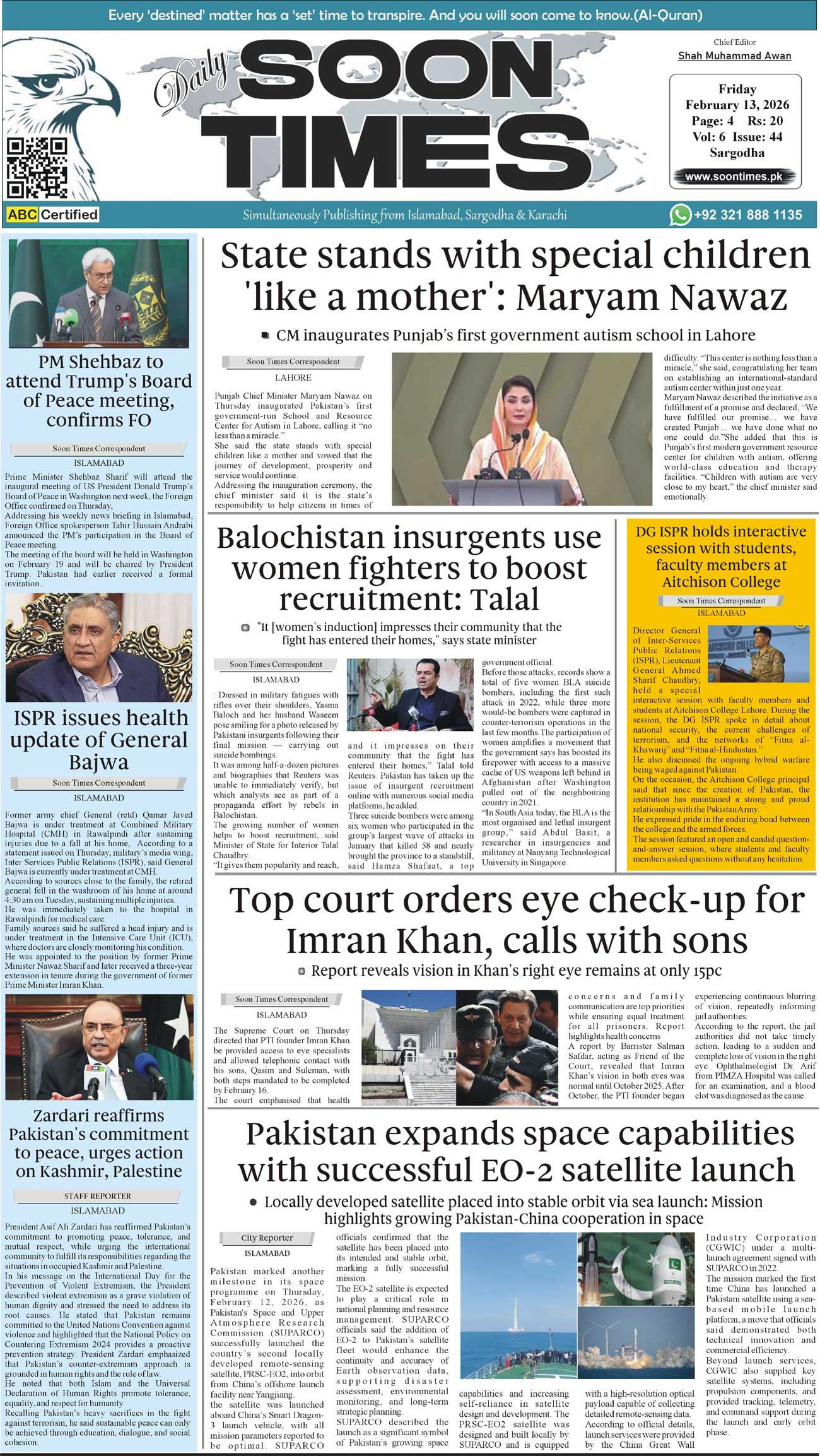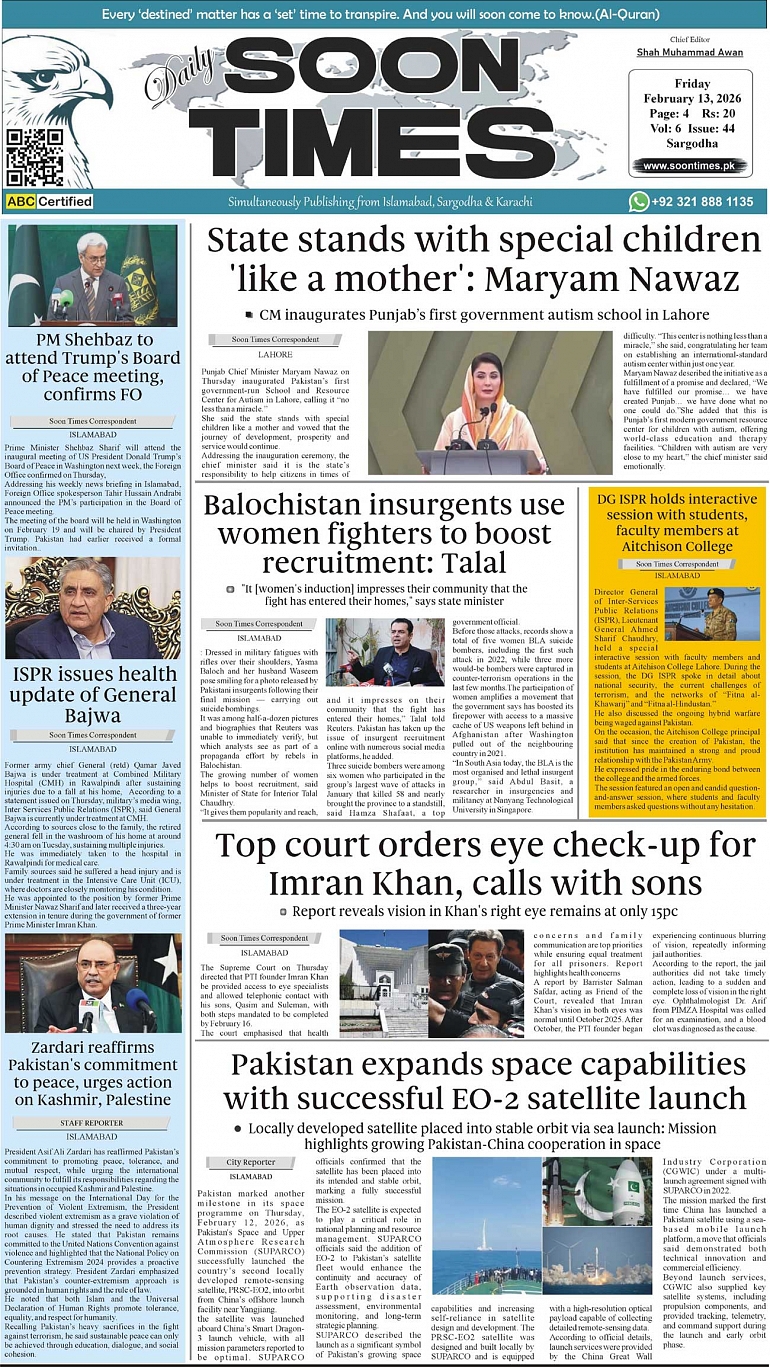 Daily Soon Times February 13, 2026 Daily Soon Times today's ePaper leading English national newspaper from Islamabad, Sargodha, Karachi, Pakistan << First << 1 >> Last >> Page 1Page 2Page 3Page 4 × Daily Soon Times 1234 1234 1