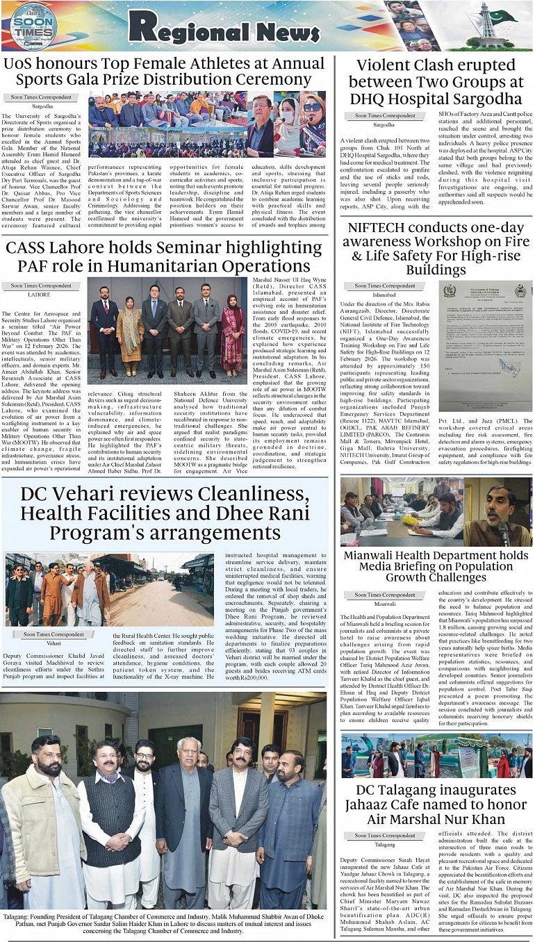 Daily Soon Times Page: 3 February 14, 2026 Daily Soon Times today's ePaper leading English national newspaper from Islamabad, Sargodha, Karachi, Pakistan << First << 3 >> Last >> Page 1Page 2Page 3Page 4 × Daily Soon Times 1.234. 1.234. 3