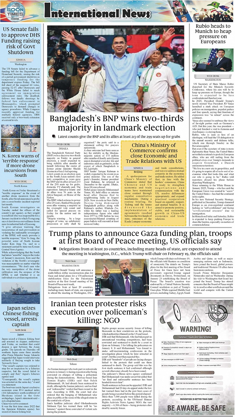 Daily Soon Times Page: 4 February 14, 2026 Daily Soon Times today's ePaper leading English national newspaper from Islamabad, Sargodha, Karachi, Pakistan << First << 4 >> Last >> Page 1Page 2Page 3Page 4 × Daily Soon Times 1k23k4. 1k23k4. 4.