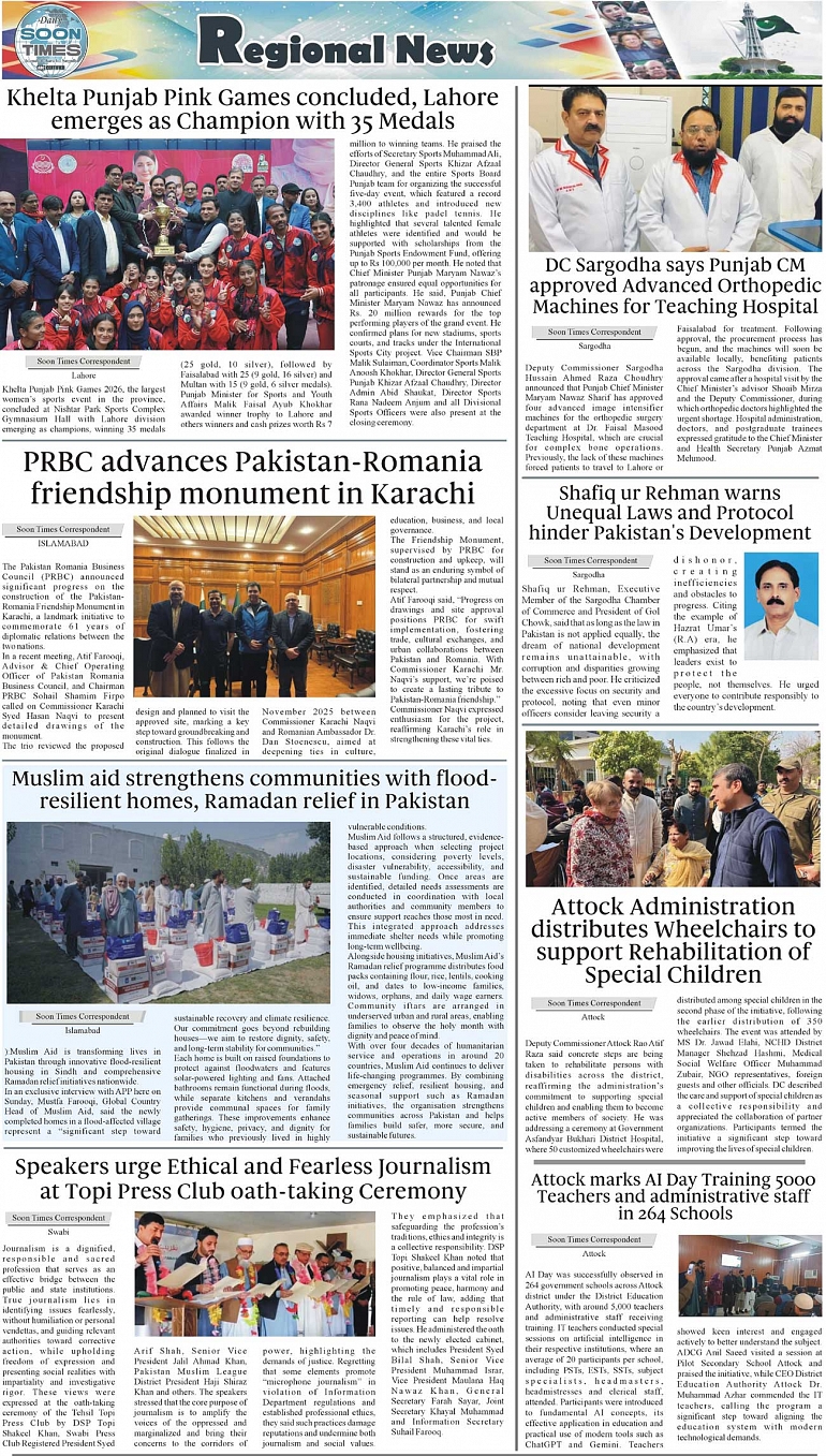 Daily Soon Times Page: 3 February 16, 2026 Daily Soon Times today's ePaper leading English national newspaper from Islamabad, Sargodha, Karachi, Pakistan << First << 3 >> Last >> Page 1Page 2Page 3Page 4 × Daily Soon Times 1.2k34 1.2k34 3
