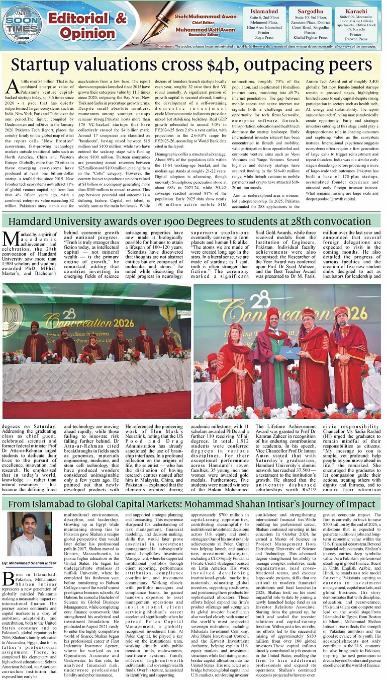 Daily Soon Times Page: 2 February 16, 2026 Daily Soon Times today's ePaper leading English national newspaper from Islamabad, Sargodha, Karachi, Pakistan << First << 2 >> Last >> Page 1Page 2Page 3Page 4 × Daily Soon Times 1k2k3k4 1k2k3k4 2k