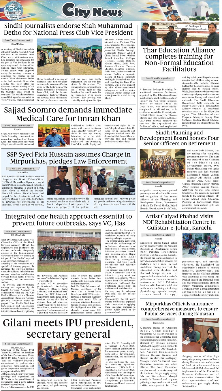 Daily Soon Times Page: 3 February 16, 2026 Daily Soon Times today's ePaper leading English national newspaper from Islamabad, Sargodha, Karachi, Pakistan << First << 3 >> Last >> Page 1Page 2Page 3Page 4 × Daily Soon Times 1k2k3k4 1k2k3k4 3k