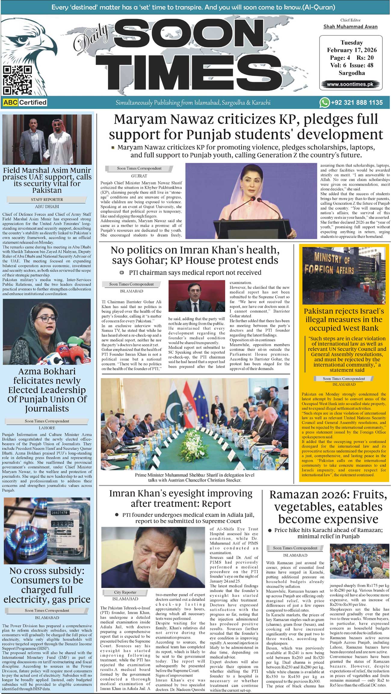 Daily Soon Times February 17, 2026 Daily Soon Times today's ePaper leading English national newspaper from Islamabad, Sargodha, Karachi, Pakistan << First << 1 >> Last >> Page 1Page 2Page 3Page 4 × Daily Soon Times 1234 1234 1