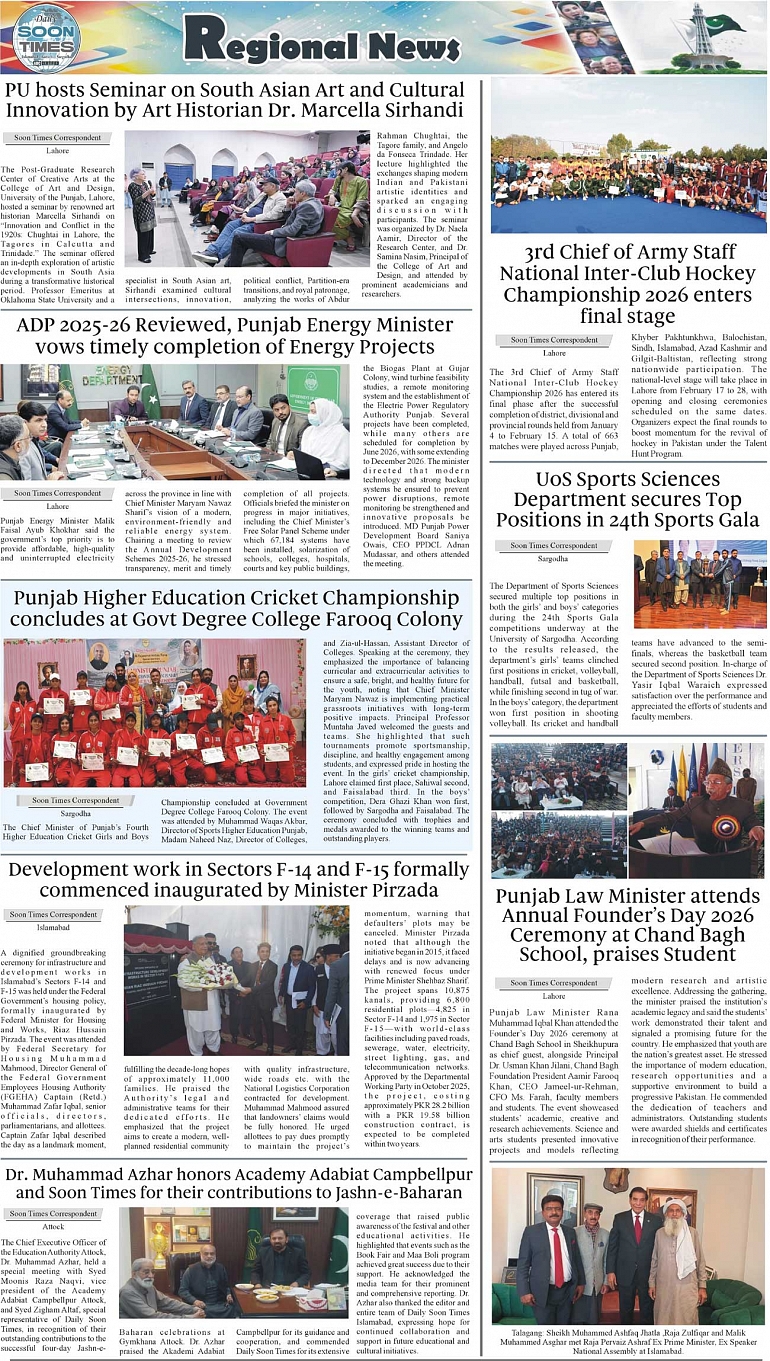 Daily Soon Times Page: 3 February 17, 2026 Daily Soon Times today's ePaper leading English national newspaper from Islamabad, Sargodha, Karachi, Pakistan << First << 3 >> Last >> Page 1Page 2Page 3Page 4 × Daily Soon Times 1234 1234 3