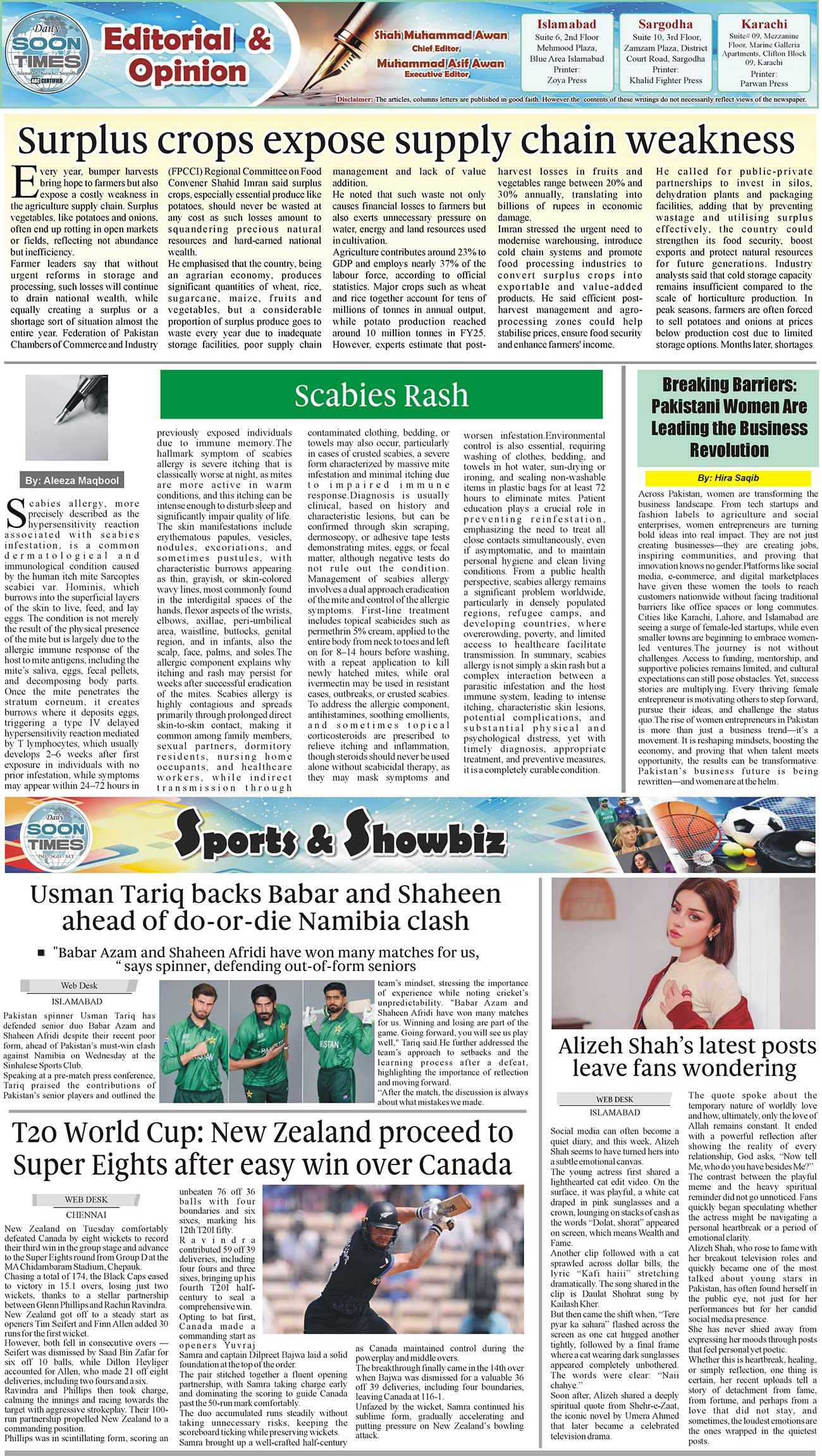 Daily Soon Times Page: 2 February 18, 2026 Daily Soon Times today's ePaper leading English national newspaper from Islamabad, Sargodha, Karachi, Pakistan << First << 2 >> Last >> Page 1Page 2Page 3Page 4 × Daily Soon Times 1234 1234 2