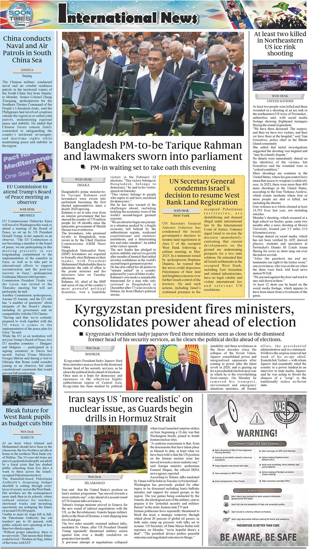 Daily Soon Times Page: 4 February 18, 2026 Daily Soon Times today's ePaper leading English national newspaper from Islamabad, Sargodha, Karachi, Pakistan << First << 4 >> Last >> Page 1Page 2Page 3Page 4 × Daily Soon Times 1i234 1i234 4
