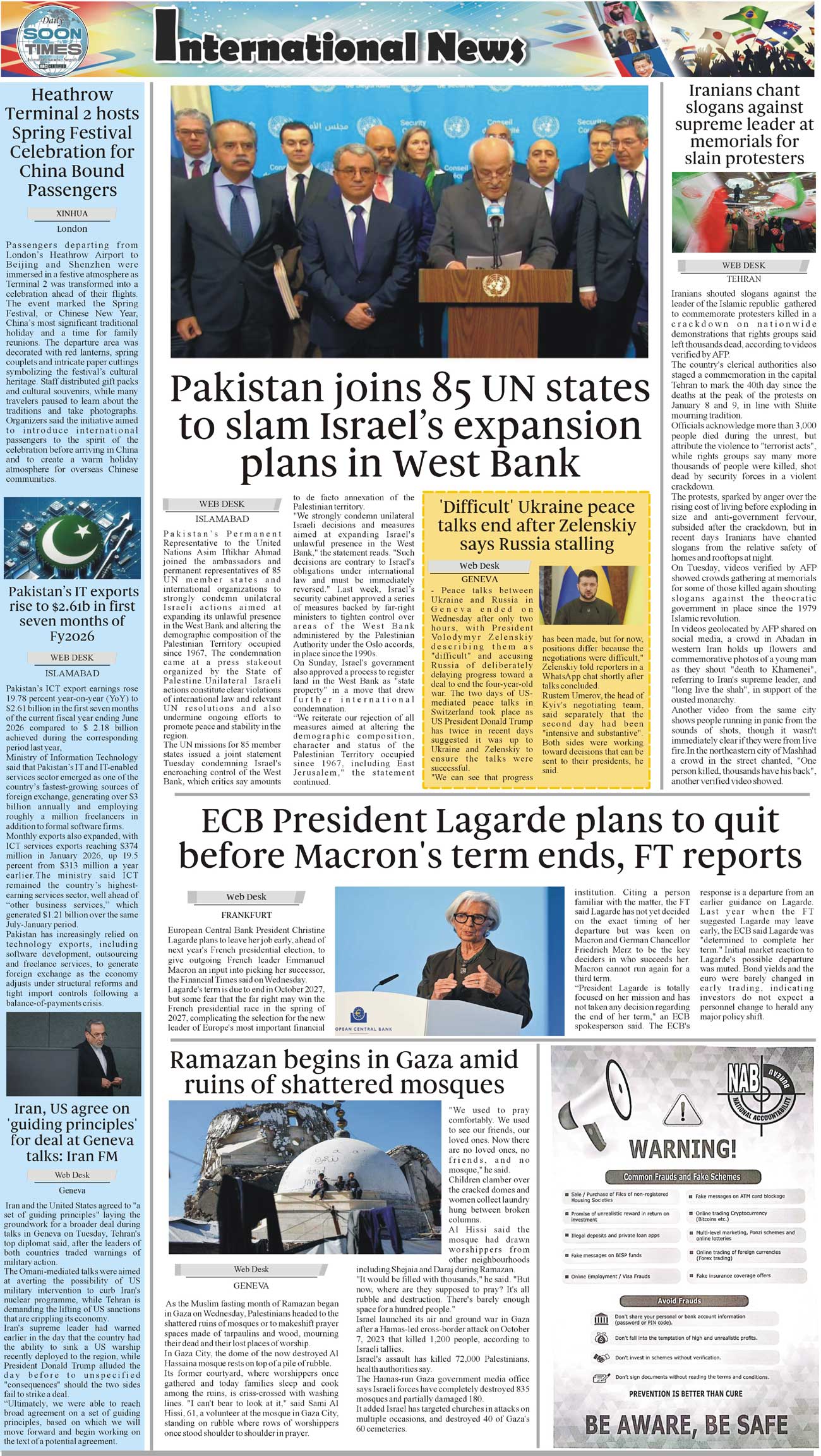 Daily Soon Times Page: 4 February 19, 2026 Daily Soon Times today's ePaper leading English national newspaper from Islamabad, Sargodha, Karachi, Pakistan << First << 4 >> Last >> Page 1Page 2Page 3Page 4 × Daily Soon Times 1k23k4 1k23k4 4