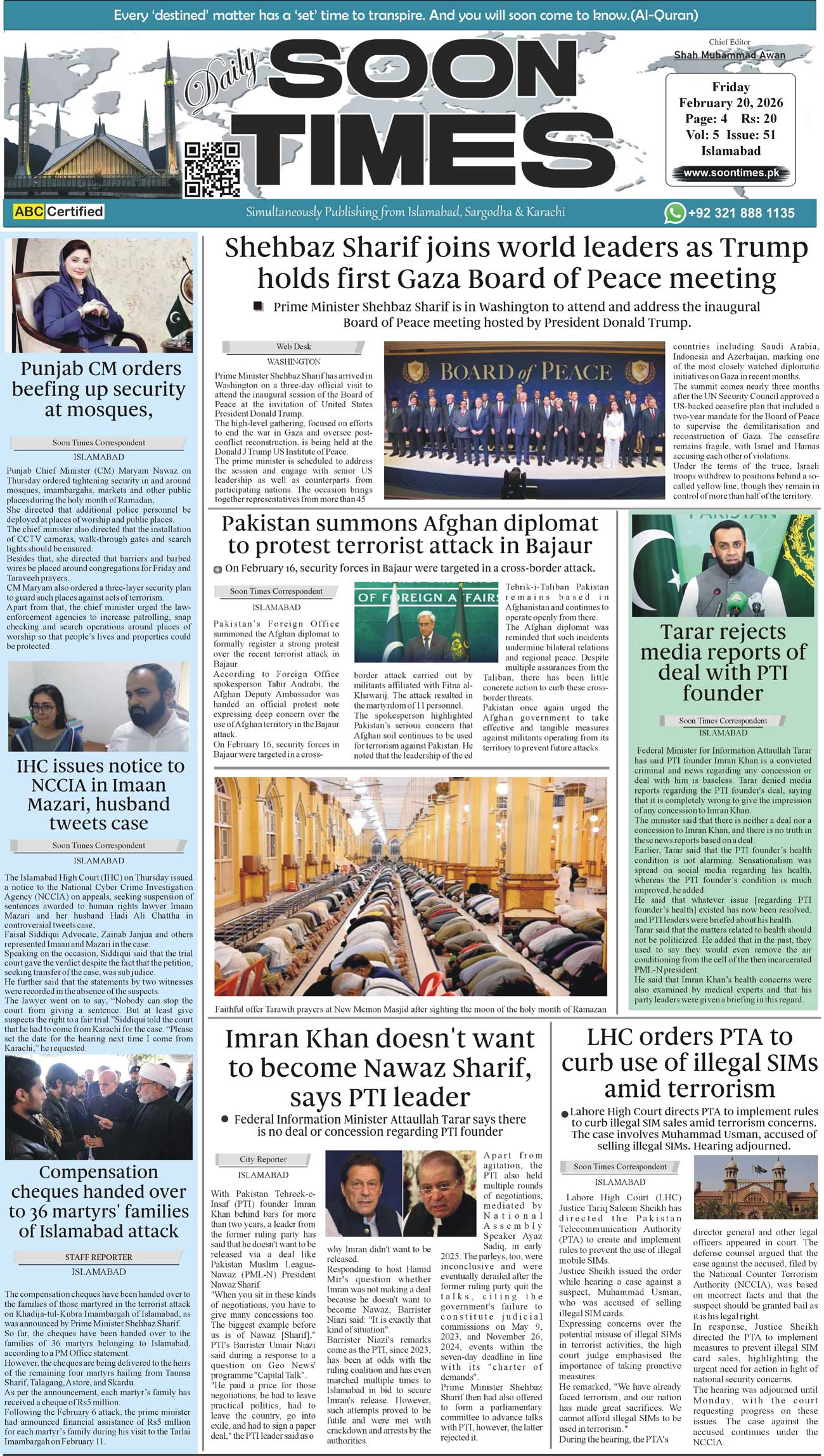 Daily Soon Times February 20, 2026 Daily Soon Times today's ePaper leading English national newspaper from Islamabad, Sargodha, Karachi, Pakistan << First << 1 >> Last >> Page 1Page 2Page 3Page 4 × Daily Soon Times 1.234 1.234 1.