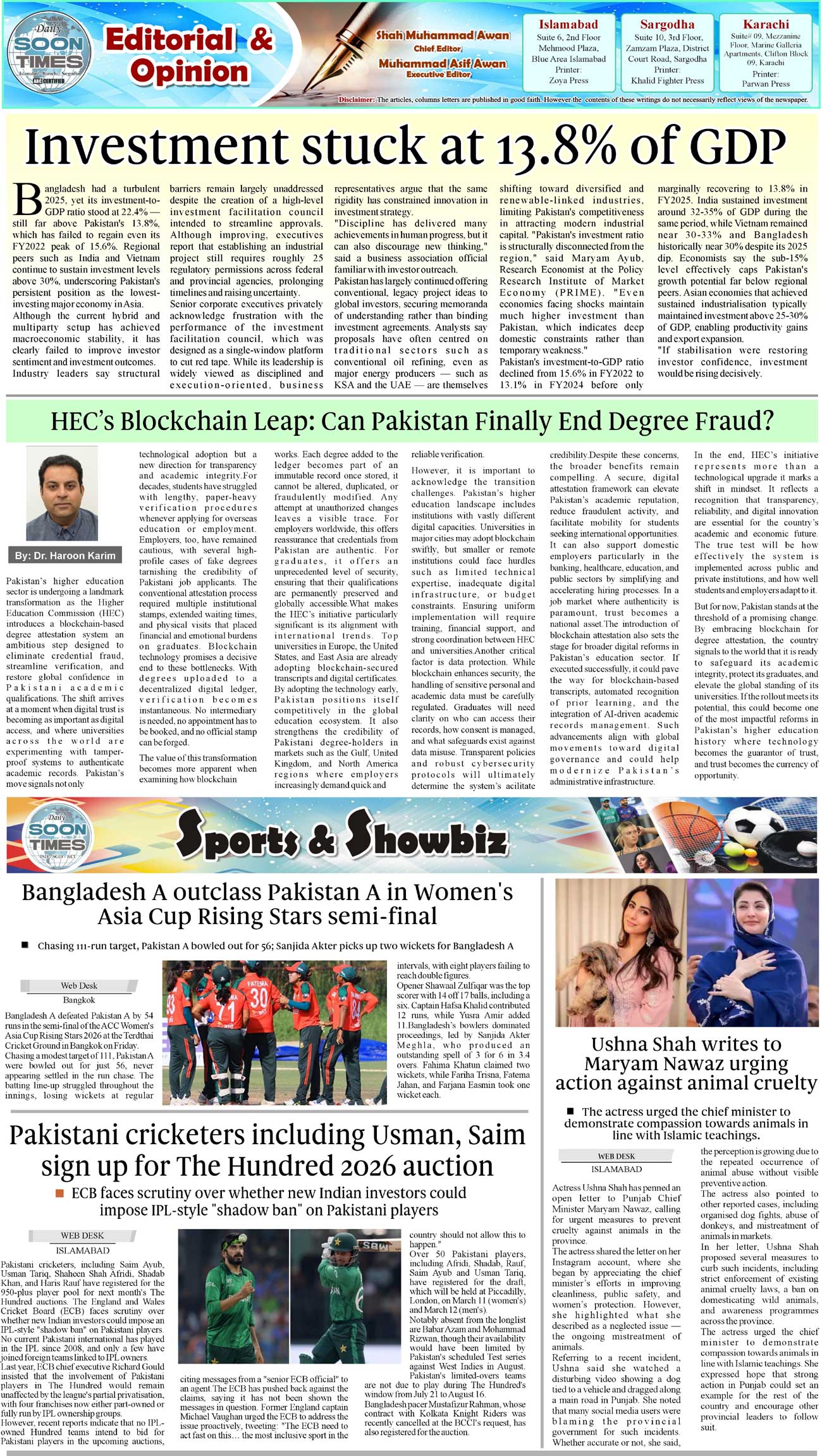 Daily Soon Times Page: 2 February 21, 2026 Daily Soon Times today's ePaper leading English national newspaper from Islamabad, Sargodha, Karachi, Pakistan << First << 2 >> Last >> Page 1Page 2Page 3Page 4 × Daily Soon Times 1.234 1.234 2