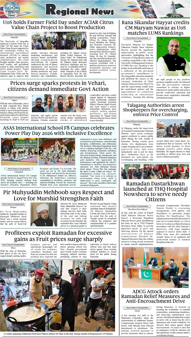 Daily Soon Times Page: 3 February 21, 2026 Daily Soon Times today's ePaper leading English national newspaper from Islamabad, Sargodha, Karachi, Pakistan << First << 3 >> Last >> Page 1Page 2Page 3Page 4 × Daily Soon Times 1234 1234 3
