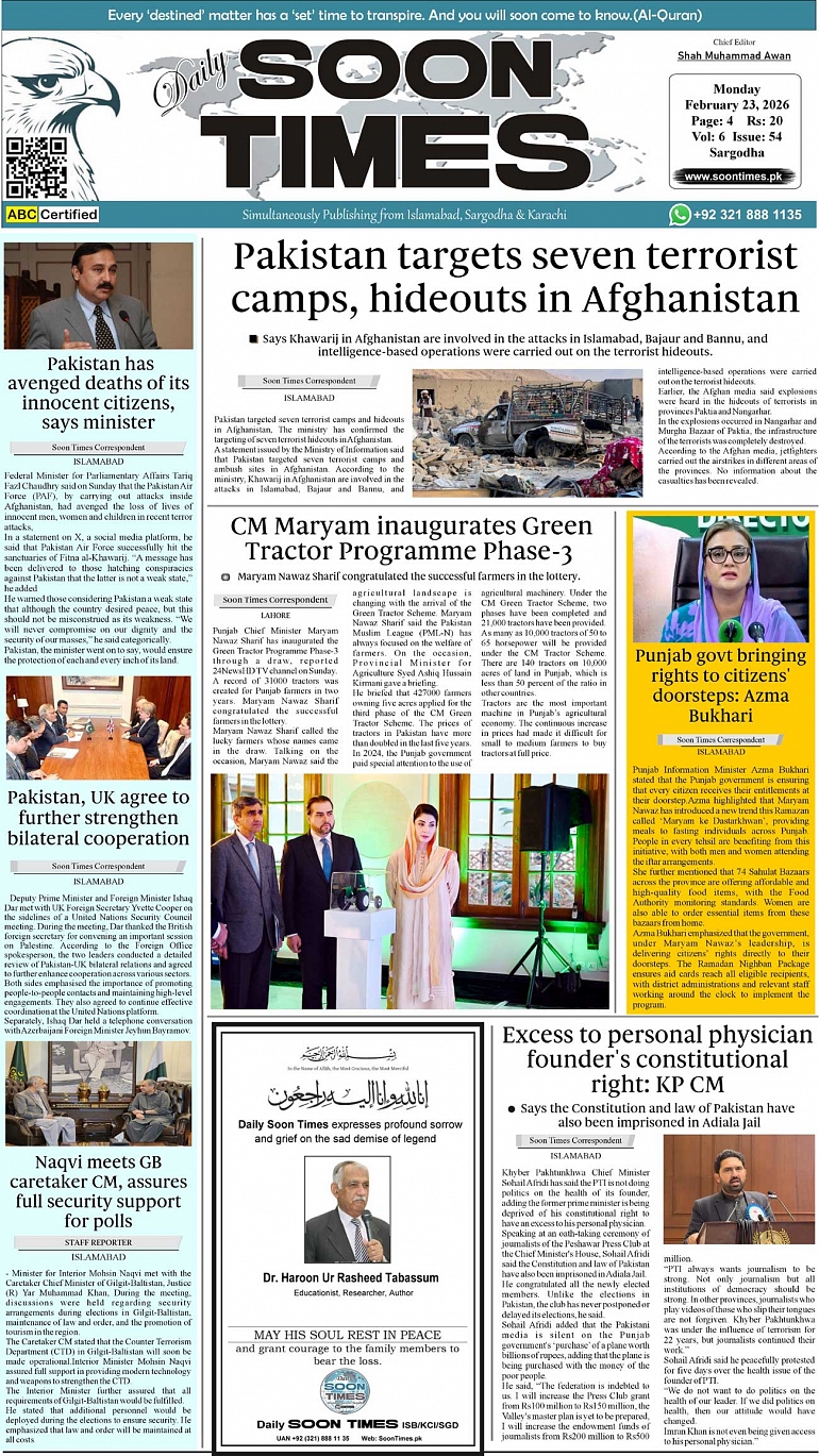 Daily Soon Times February 23, 2026 Daily Soon Times today's ePaper leading English national newspaper from Islamabad, Sargodha, Karachi, Pakistan << First << 1 >> Last >> Page 1Page 2Page 3Page 4 × Daily Soon Times 1234 1234 1
