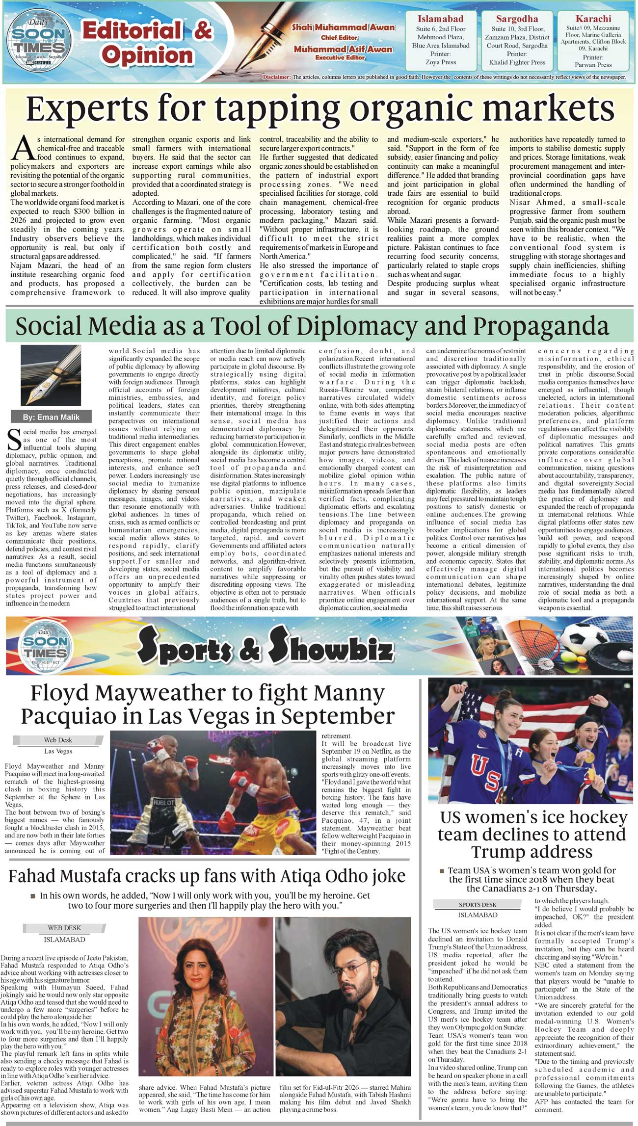 Daily Soon Times Page: 2 February 25, 2026 Daily Soon Times today's ePaper leading English national newspaper from Islamabad, Sargodha, Karachi, Pakistan << First << 2 >> Last >> Page 1Page 2Page 3Page 4 × Daily Soon Times 1,234 1,234 2
