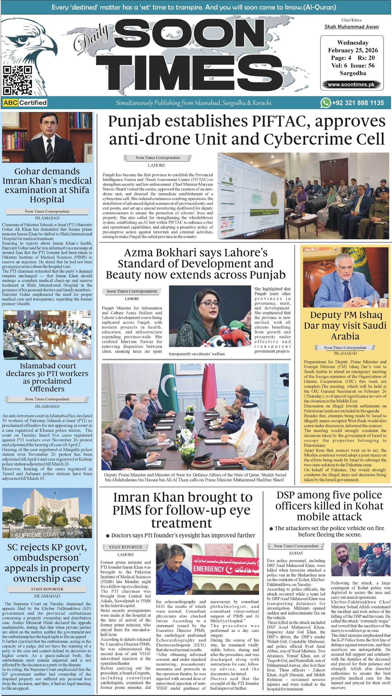 Daily Soon Times February 25, 2026 Daily Soon Times today's ePaper leading English national newspaper from Islamabad, Sargodha, Karachi, Pakistan << First << 1 >> Last >> Page 1Page 2Page 3Page 4 × Daily Soon Times 1234 1234 1