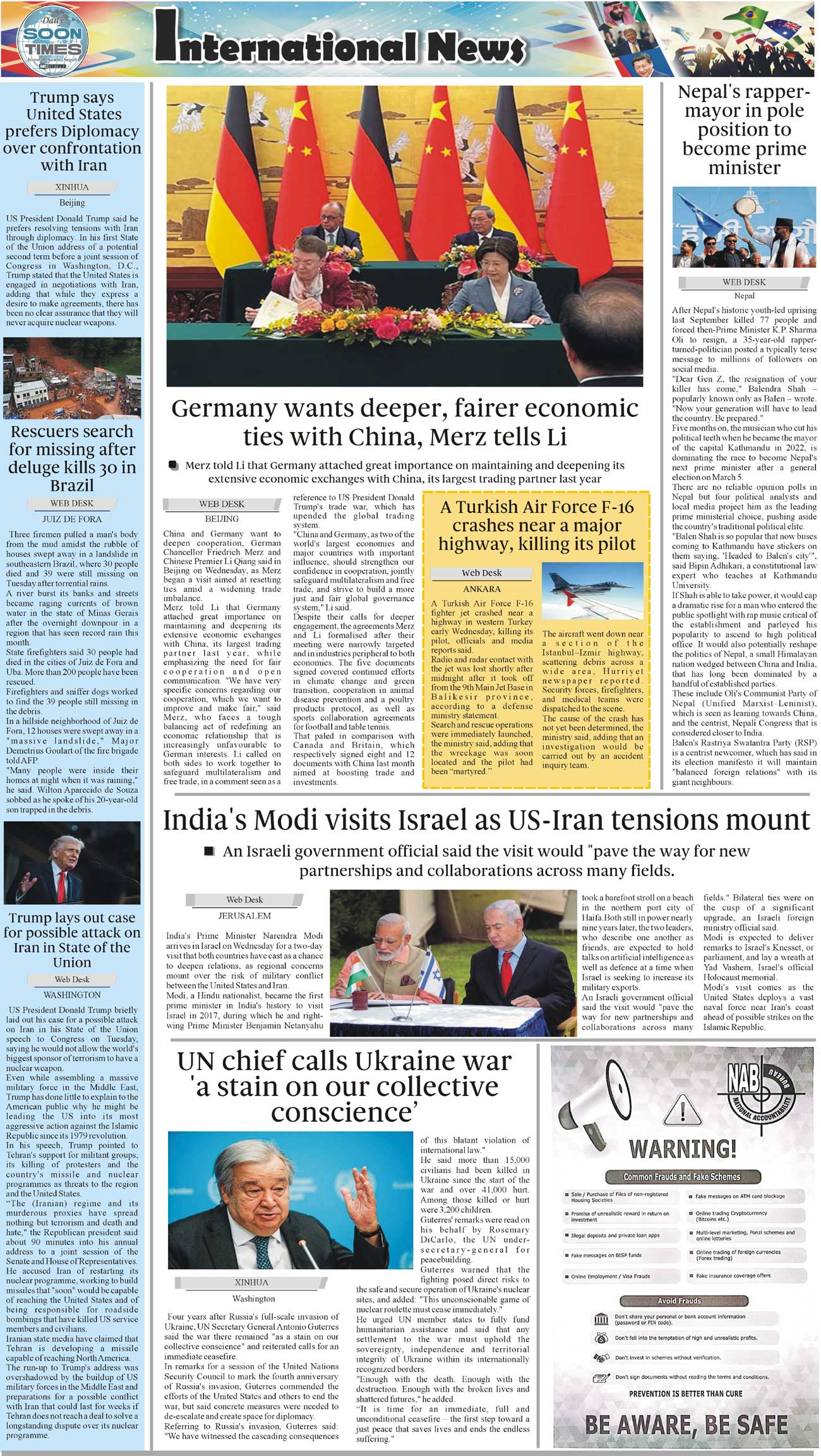 Daily Soon Times Page: 4 February 26, 2026 Daily Soon Times today's ePaper leading English national newspaper from Islamabad, Sargodha, Karachi, Pakistan << First << 4 >> Last >> Page 1Page 2Page 3Page 4 × Daily Soon Times 1k23k4 1k23k4 4