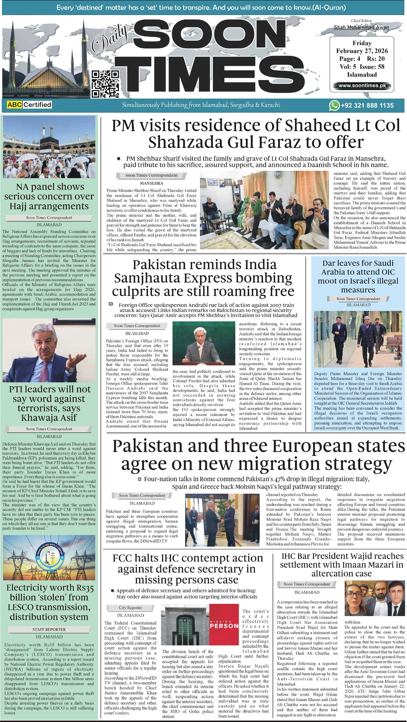 Daily Soon Times February 27, 2026 Daily Soon Times today's ePaper leading English national newspaper from Islamabad, Sargodha, Karachi, Pakistan << First << 1 >> Last >> Page 1Page 2Page 3Page 4 × Daily Soon Times 1.234 1.234 1.
